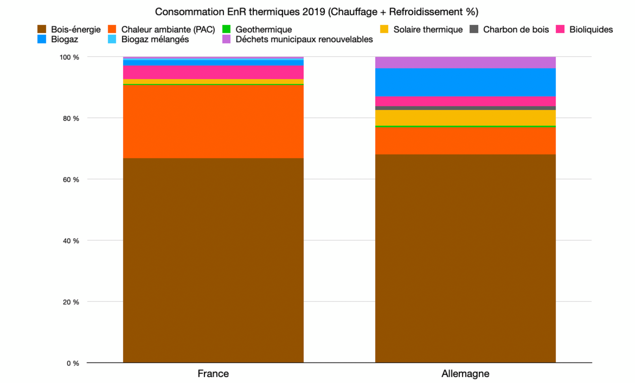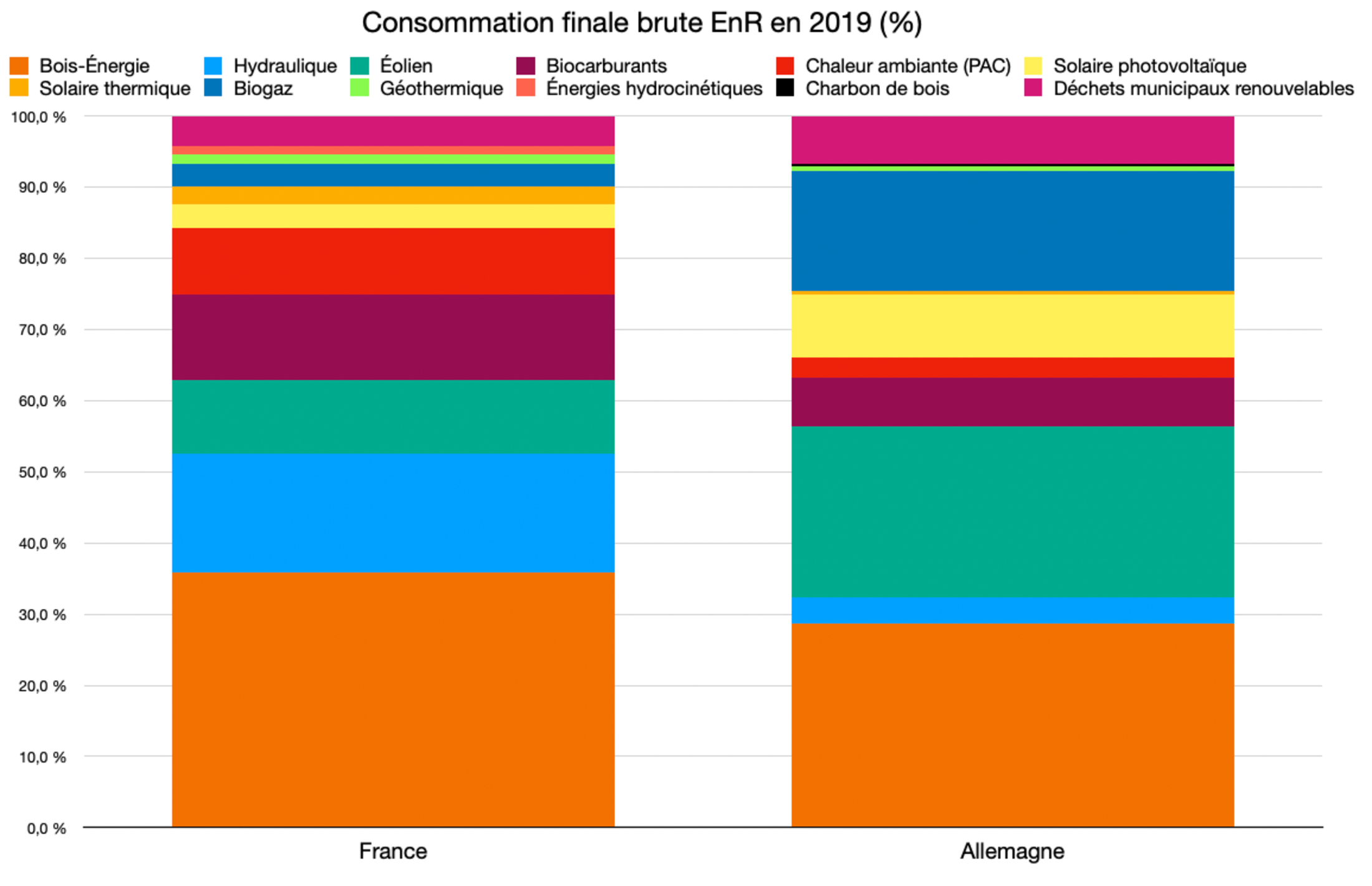 Part des énergies renouvelables dans la consommation finale d'énergie / France 1 - 1 Allemagne