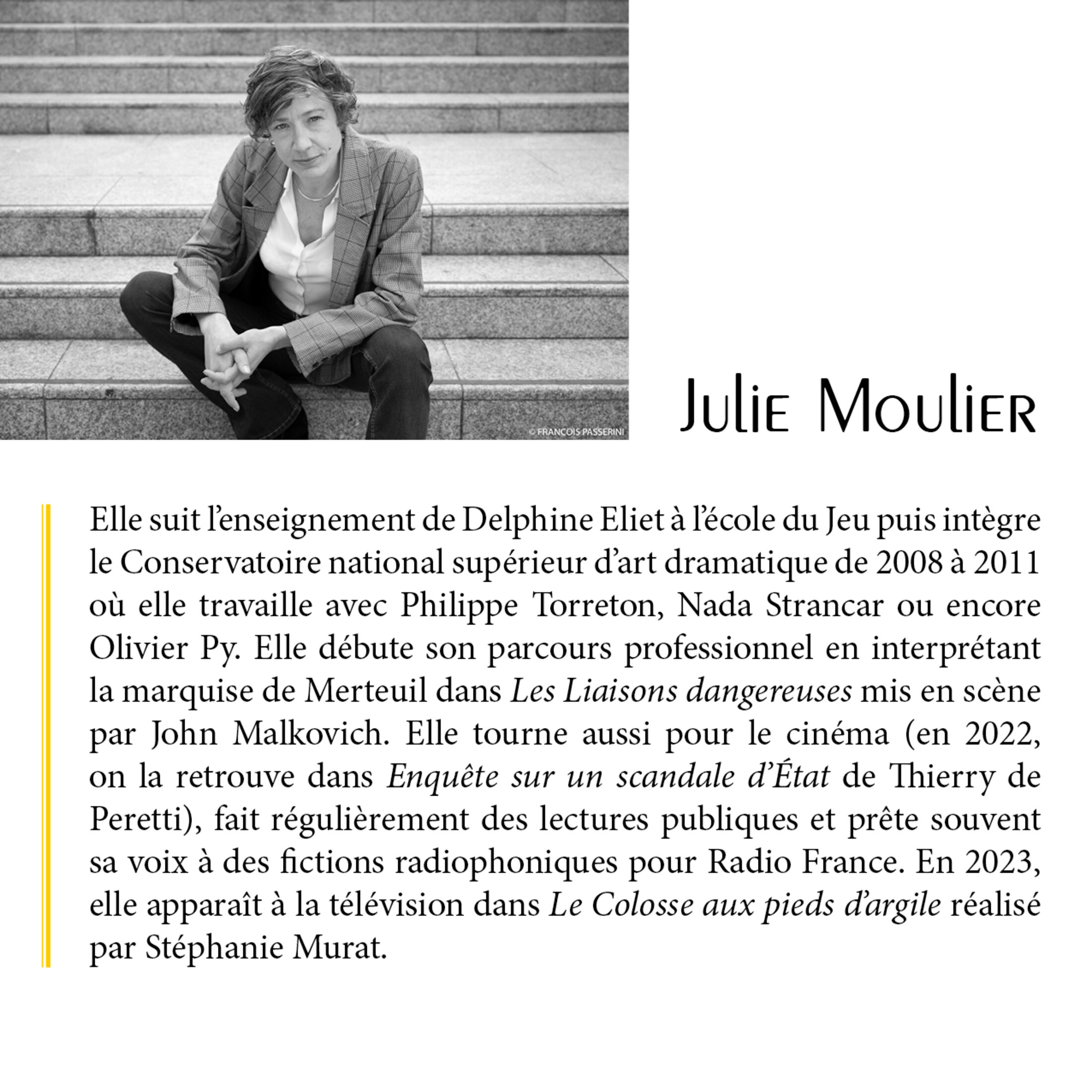 – Mardi 22 août à 14h30 : « Hommage à Carmen Laforet ». Présentation par Pierre Baux, comédien, suivie d’une lecture par Julie Moulier, comédienne, de « Nada » (traduction de Marie-Madeleine Peignot et Mathilde Pomès).