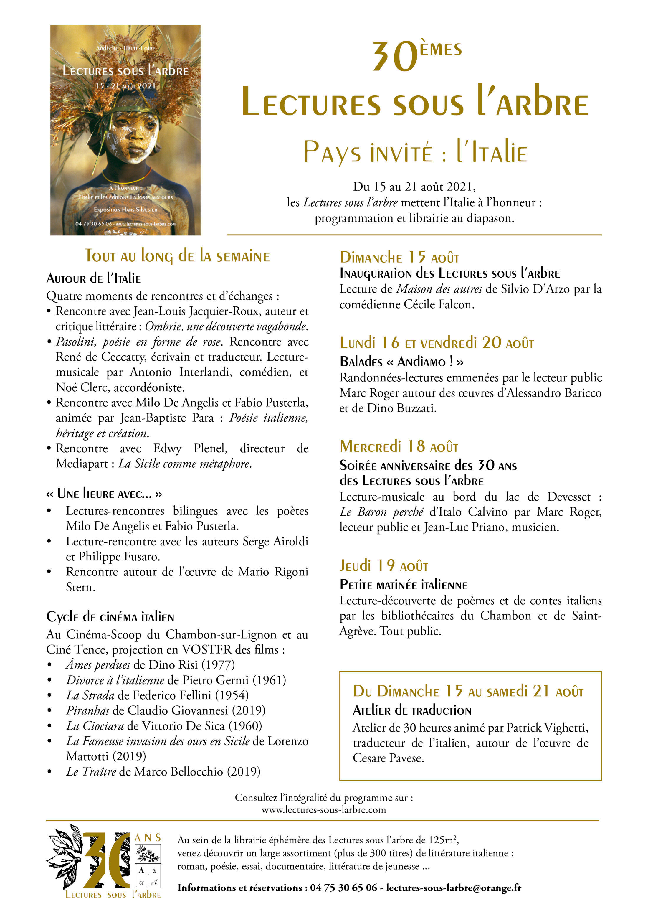 Retrouvez toutes les informations dans le programme complet : https://www.lectures-sous-larbre.com/programme