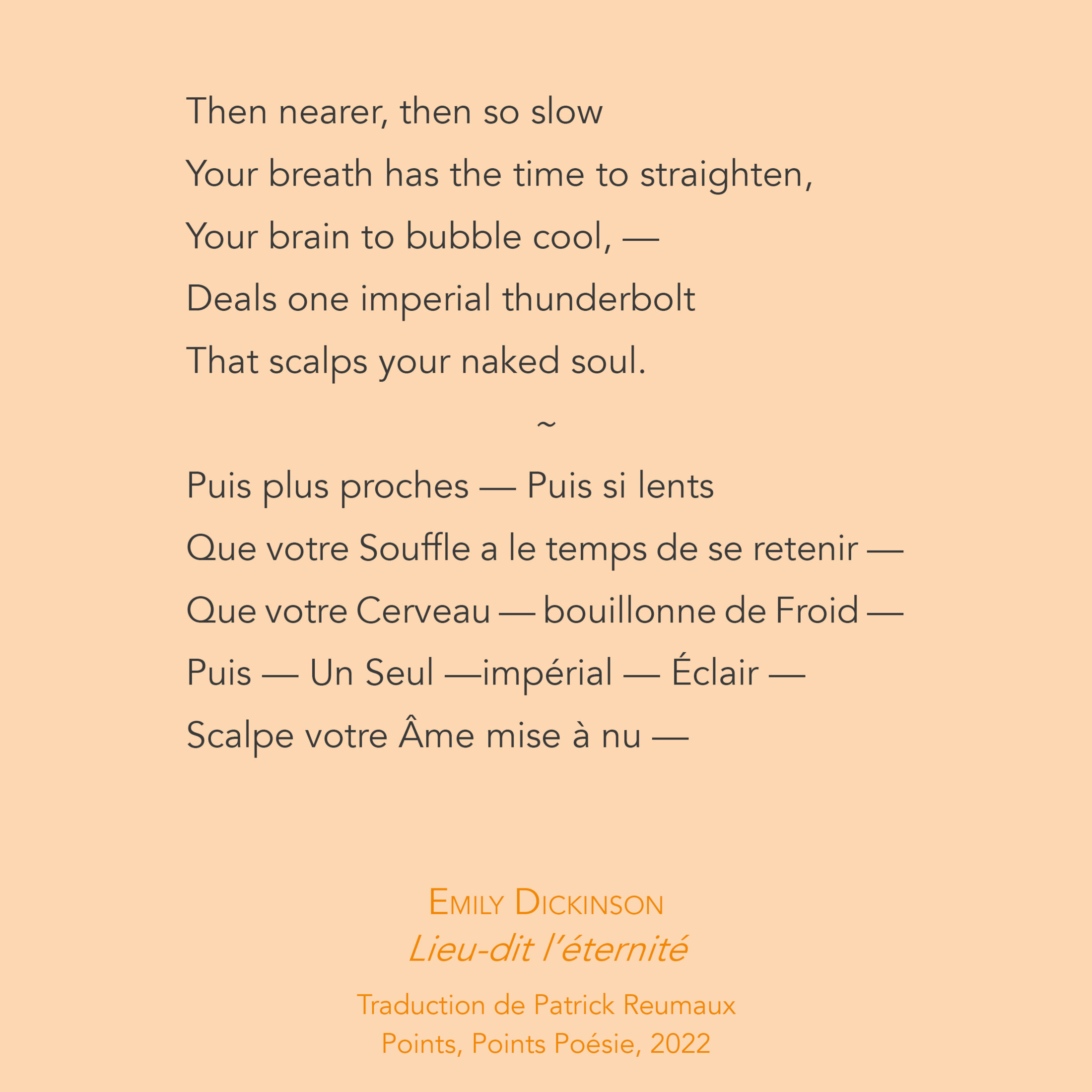 Mardi 16 août à 14h30 : « Hommage à Emily Dickinson ». Présentation par Emmanuel Echivard, auteur, et lecture par Fany Buy, comédienne, de « Lieu-dit l'éternité » (traduction de Patrick Reumaux).