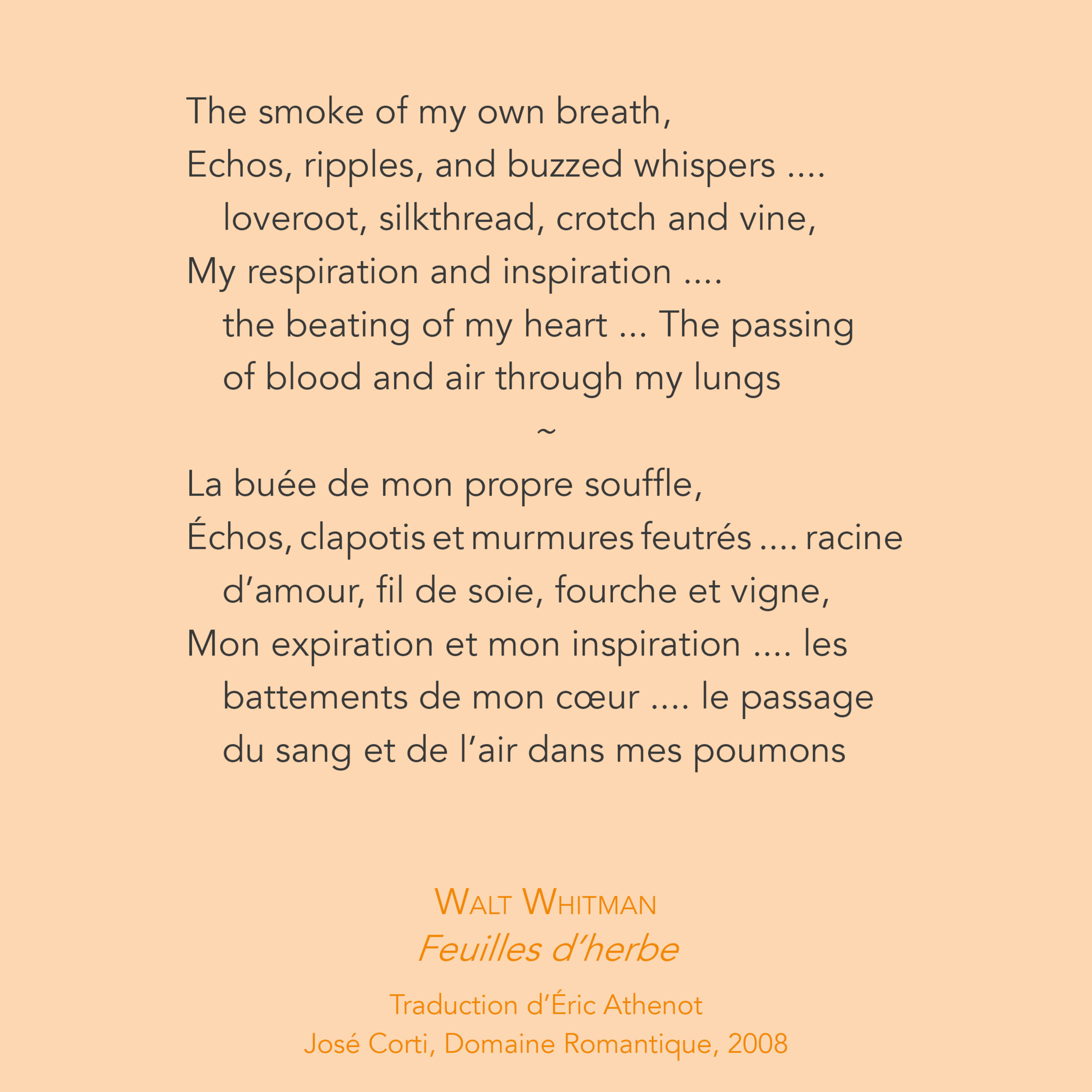 Lundi 15 août à 14h30 : « Hommage à Walt Whitman ». Présentation par Victor Malzac, auteur, et lecture par Julie Moulier, comédienne, de « Feuilles d'herbe » (traduction d'Éric Athenot).