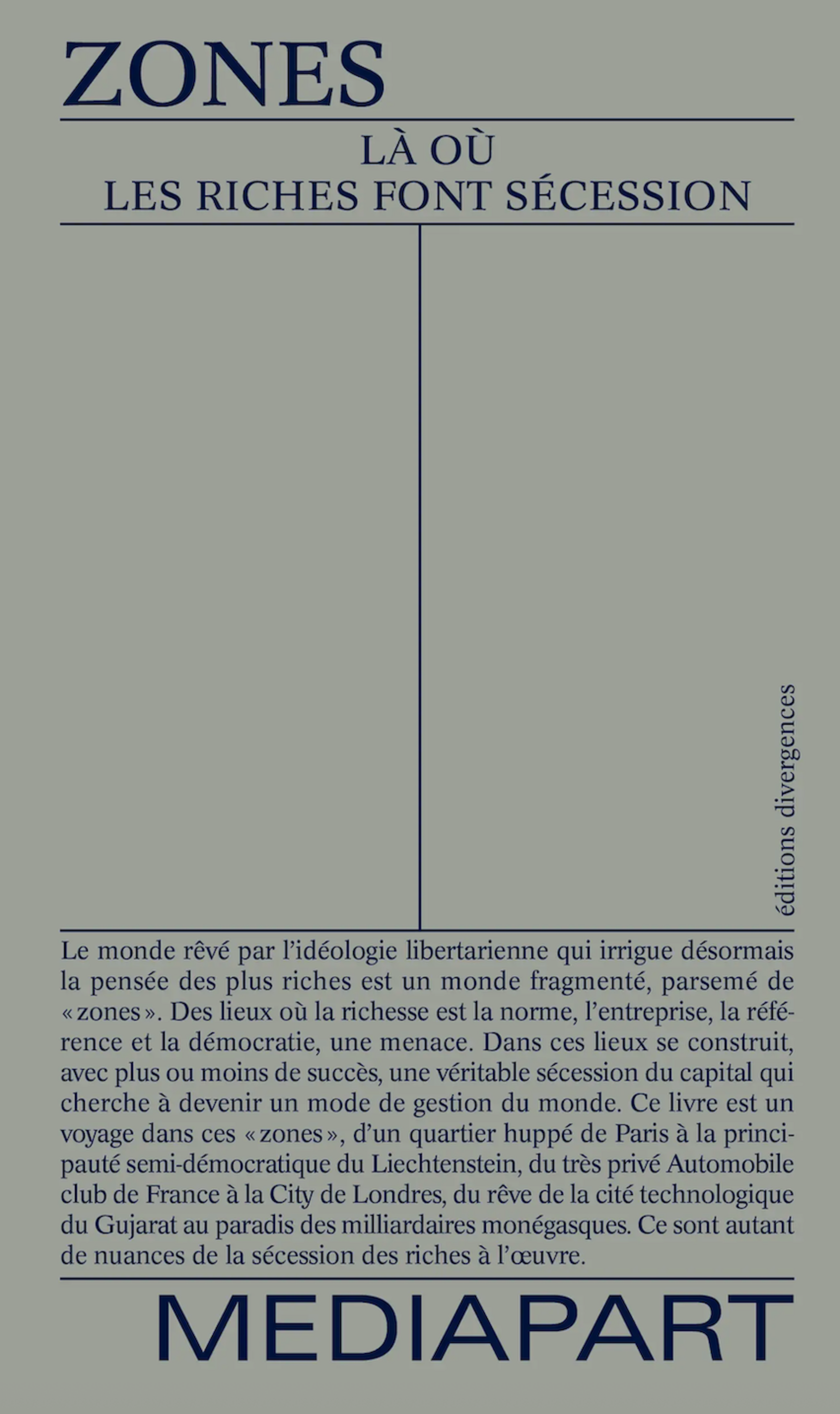 Zones, là où les riches font sécession, Mediapart, Divergences, janvier 2026, 13 euros.