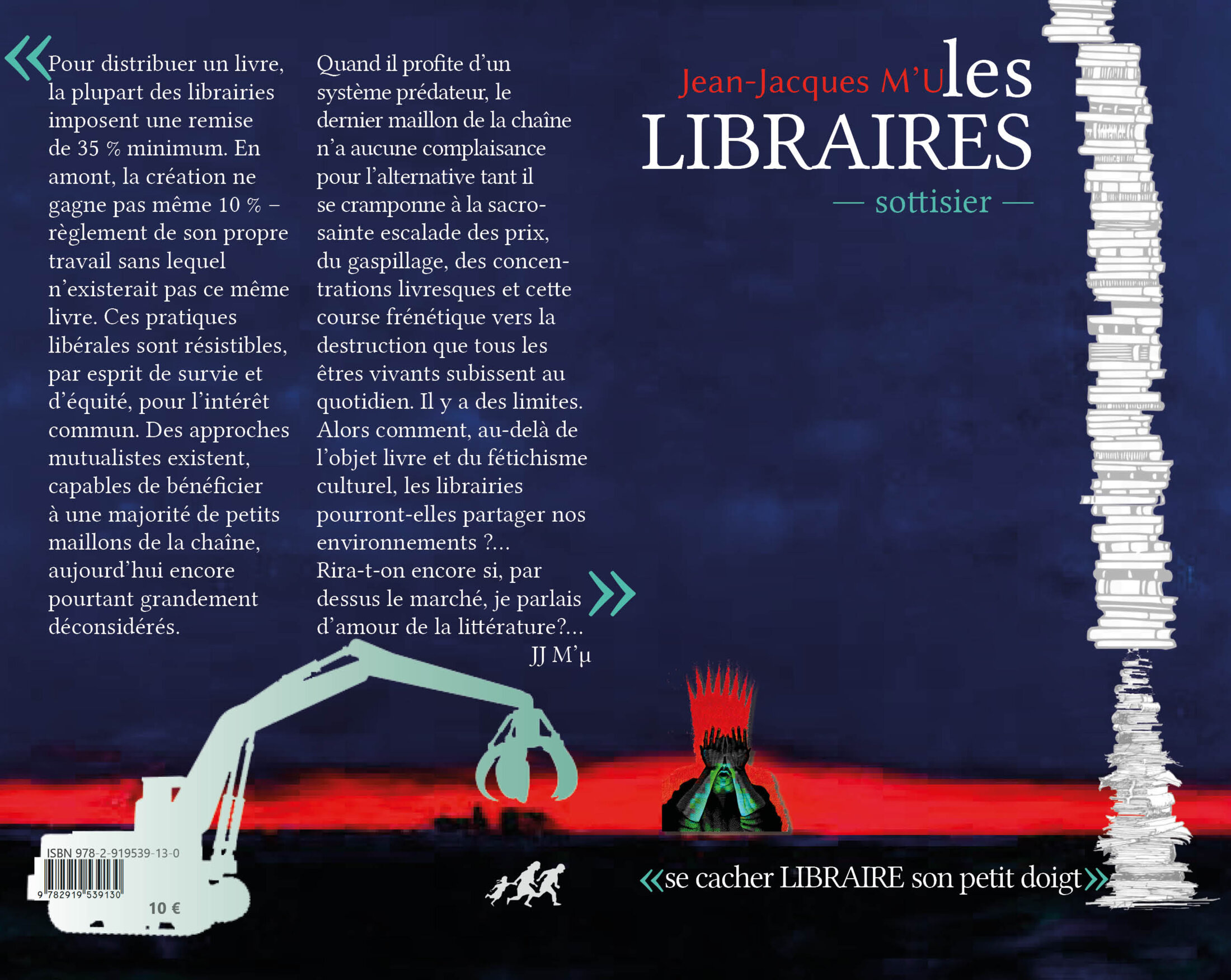 Pour distribuer un livre, la plupart des librairies imposent une remise de 35 % minimum. En amont, la création ne gagne pas même 10 % – règlement de son propre travail sans lequel n’existerait pas ce même livre. Ces pratiques libérales sont résistibles, par esprit de survie et d’équité, pour l’intérêt commun. Des approches mutualistes existent, capables de bénéficier à une majorité de petits maillons de la chaîne, aujourd’hui encore pourtant grandement déconsidérés. Quand il profite d’un système prédateur, le dernier maillon de la chaîne n’a aucune complaisance pour l’alternative tant il se cramponne à la sacro-sainte escalade des prix, du gaspillage, des concentrations livresques et cette course frénétique vers la destruction que tous les êtres vivants subissent au quotidien. Il y a des limites. Alors comment, au-delà de l’objet livre et du fétichisme culturel, les librairies pourront-elles partager nos environnements ?... Rira-t-on encore si, par dessus le marché, je parlais d’amour de la littérature ?...