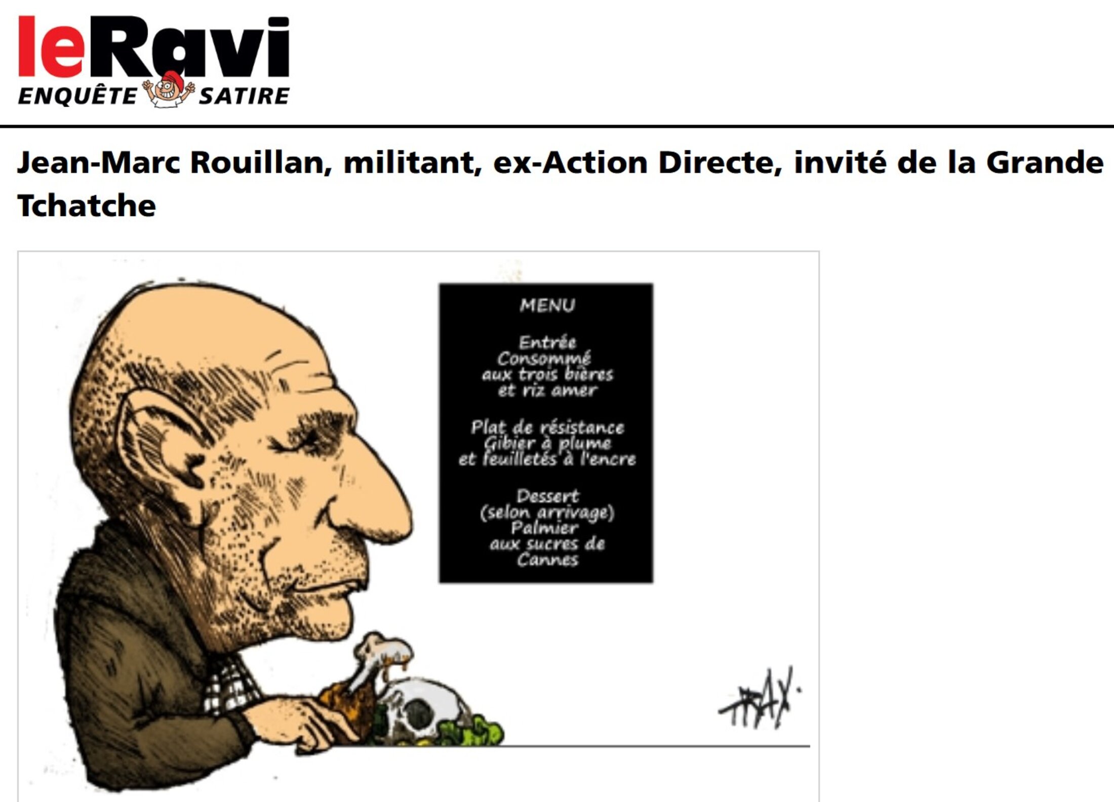La situation concernant Jann-Marc Rouillan : La fin de la condamnation consécutive à l'interview de Jann-Marc (une heure) au Ravi en mars 2016 était prévue pour le 2 juin prochain. Il y a 5 jours, la probation lui a annoncé ainsi qu'à ses avocat.e.s, qu'il avait été jugé en septembre 2017, sans en avoir été averti, sans sa présence, et sans celle de sa défense. Il a été condamné à payer 18 000 € (dix-huit mille euros) aux “victimes” de son interview (lire à ce sujet : « Les lendemains qui chantent... devant nous » par Rafi Hamal, début mars 2016 ; « Pourquoi Rouillan au Ravi ? » par Michel Gairaud mi-mars 2016 ; « Je m'adresse à des ennemis » par Trax en juillet 2016