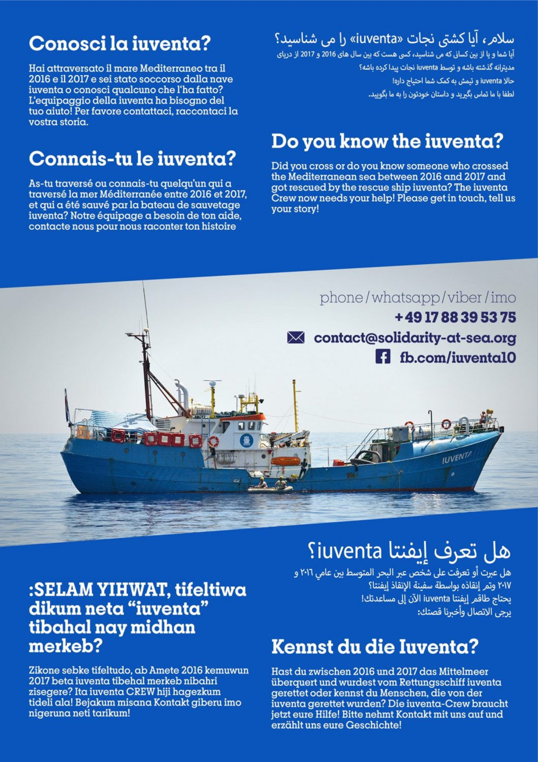 Nous recherchons de toute urgence des témoignages d’exilé.e.s (même anonymes) ayant été sauvé.e.s en mer Méditerranée entre juillet 2016 et août 2017 par le navire de sauvetage Iuventa10.