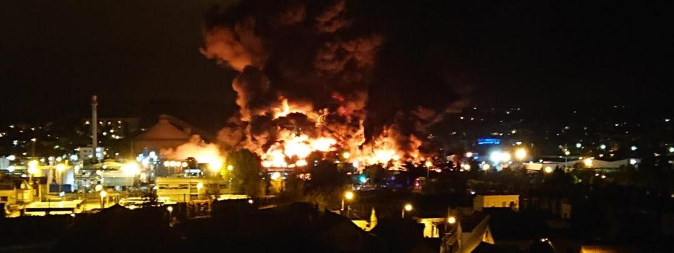 Une nuit en ville. Rouen, jeudi 29 septembre 2019. Incendie dans une usine “Seveso seuil haut IEO” (usine à 500 m du centre ville – donc “en ville”) le plus dangereux et polluant.