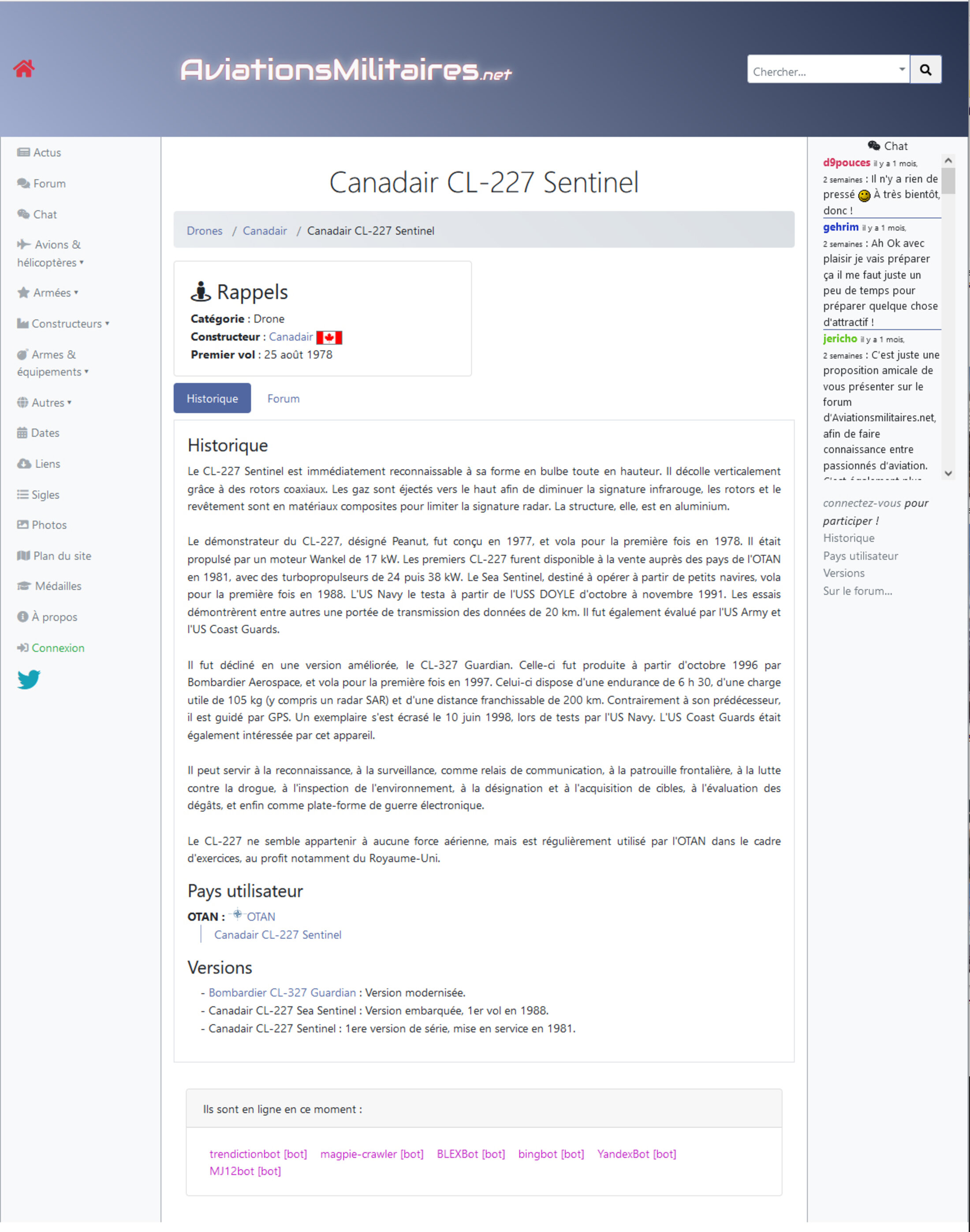 Il a été retenu dans les listes de drones de l'OTAN dans les années 90, tout comme l'autre modèle de Canadair non stationnaire CL 89.