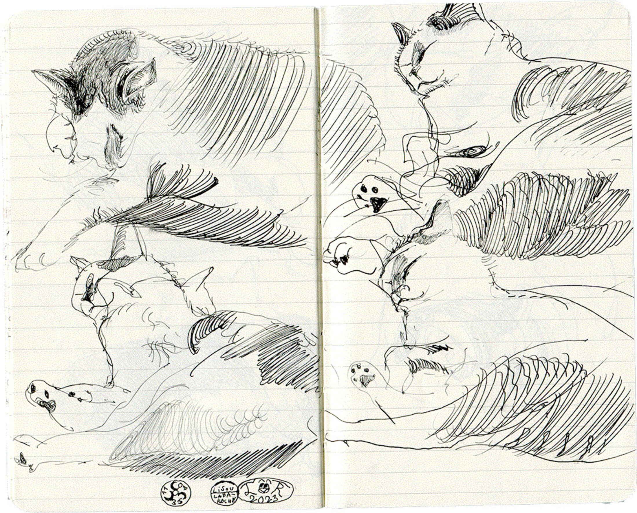 Les quelques dessins mensuels auront pour fil rouge l'écoute du quotidien, des formes du vivant et des fantômes qui s'y nichent.