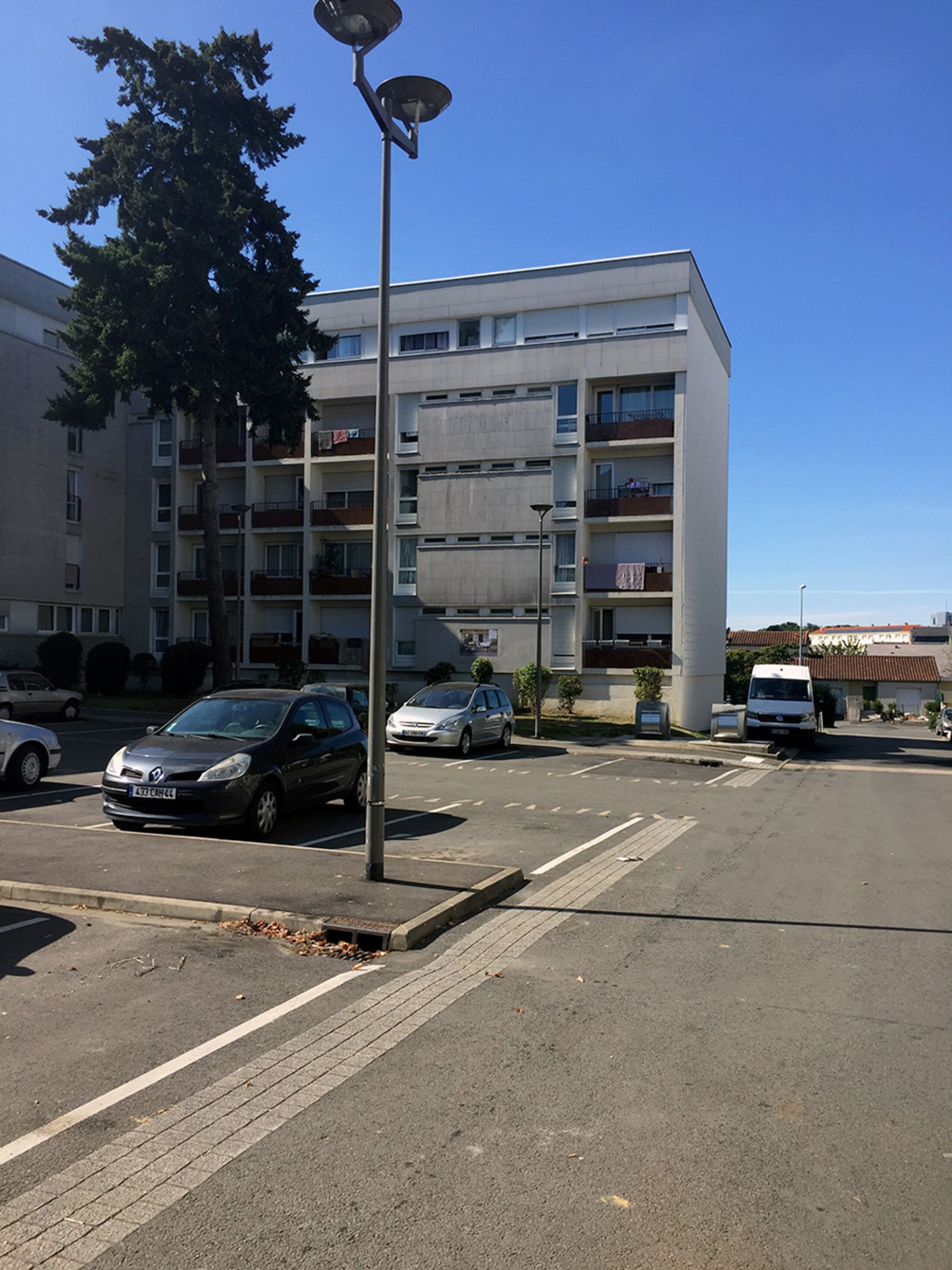 Dans les années 1990, c'était un groupe de logements construits dans les années 1960 pour y loger des familles de harki a l’issue de la Revolution algérienne qui avaient été détruits pour laisser place à des pavillons dont les résident.e.s sont majoritairement des personnes de la classe moyenne blanche. Au moment de la “rénovation” du quartier — “un coup de peinture sur les façades” me dit un des résidents — ce sont même des terrains de football et de basket qui devront laisser la place à de nouveaux immeubles, renforçant la densité jugée déjà très dense par ses habitants, et retirant encore des espaces de socialité. Ne demeurent que quelques restes de pelouse mal entretenues entre les places de parking et les immeubles, un mini terrain de foot “pour les petits” et un mail de verdure devant l'école maternelle. Un accès au complexe sportif voisin eût pu être imaginé mais le mur qui le sépare du quartier (récemment entamé à coup de marteau par les jeunes du quartier) a été rénové et y a été ajouté, une lame de dents métalliques empêchant son escalade.