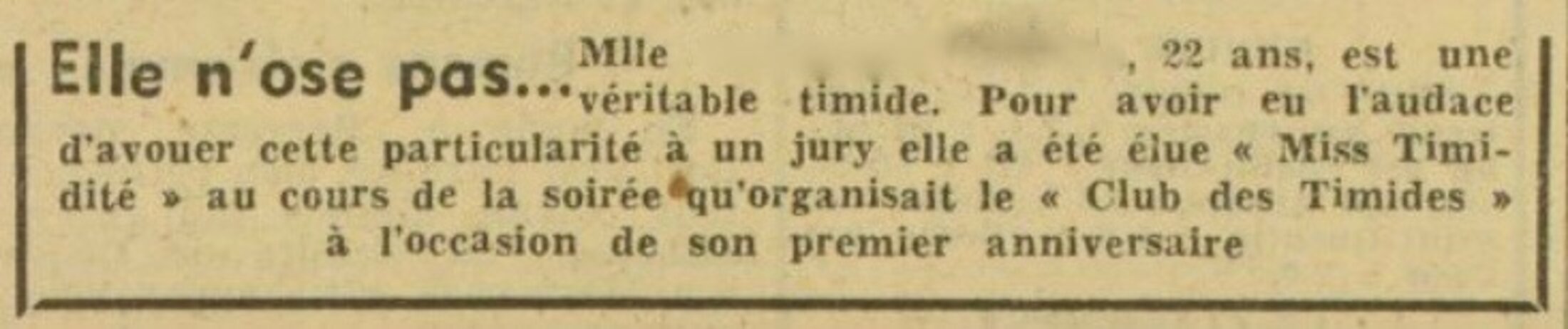 En 1950, dans le renommé journal Combat - de la Résistance à la Révolution - on célébrait Miss Timide (le 11 décembre 1950, numéro 2002).