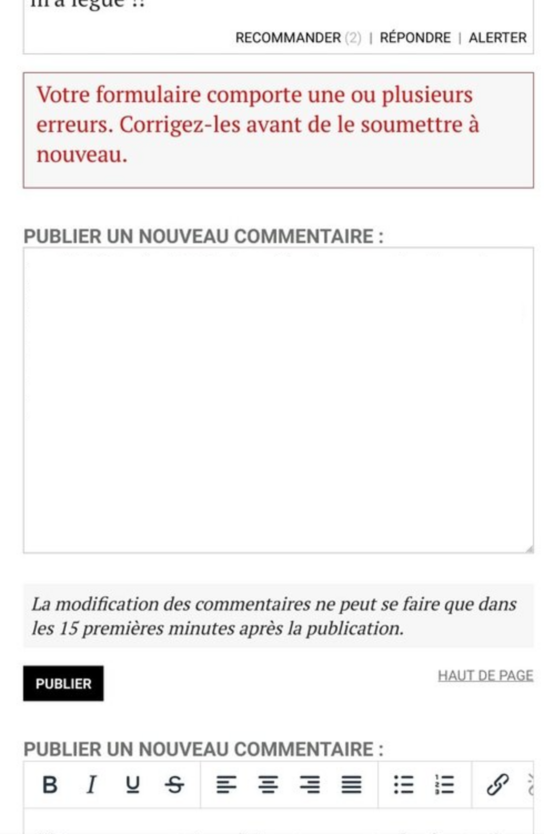 Plusieurs d’entre vous nous ont fait part de difficultés rencontrées alors qu’ils/elles tentaient de publier un commentaire ou d'y répondre, de publier un billet de blog ou encore d'envoyer un message privé. Souvent, la publication semble bloquée par une erreur ou autre comportement inattendu.