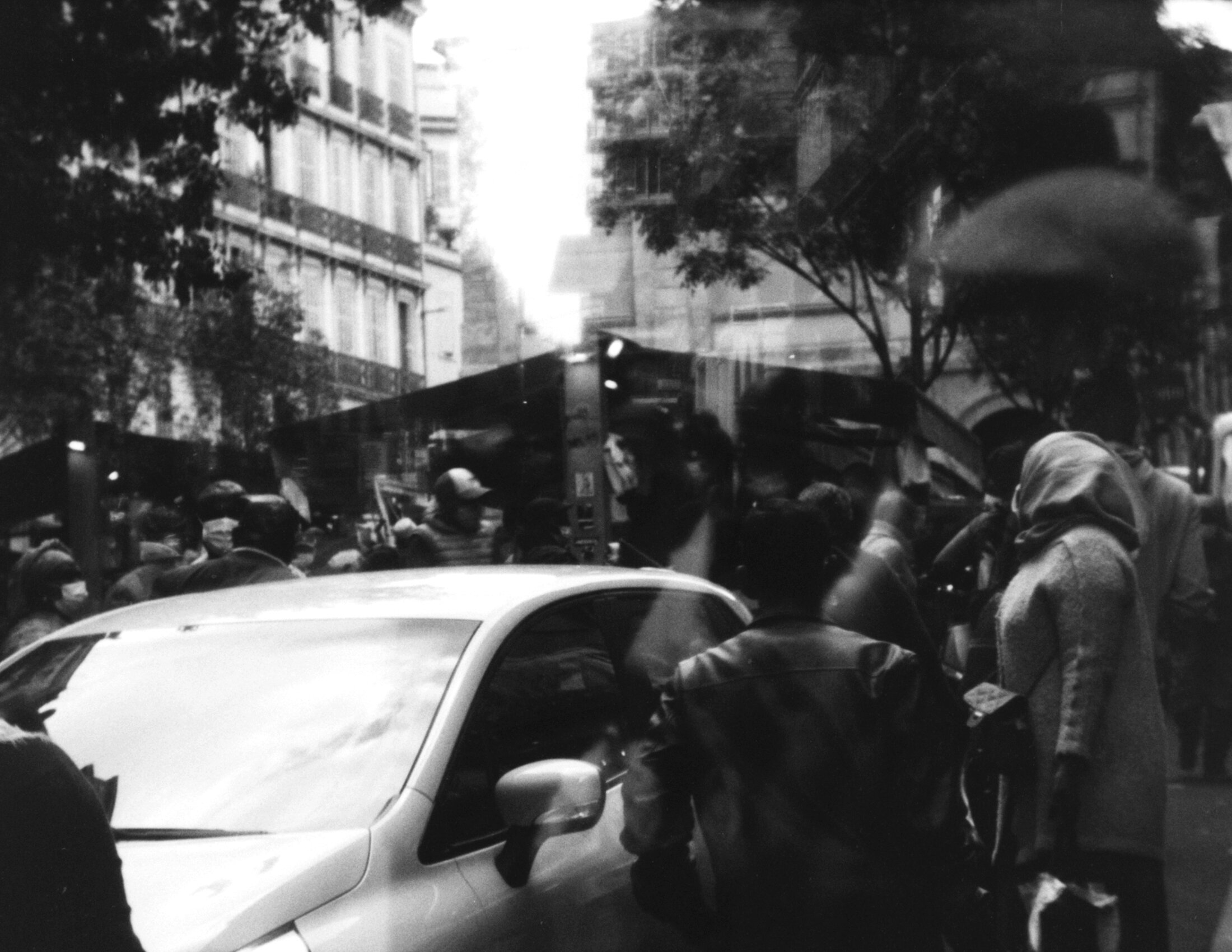 Il me semble que votre film s’articule autour de deux éléments, deux entités. D’une part l’élément formel, esthétique, cristallisé autour de l’image argentique et de l’autre, l’élément « didactique » porté par le son. Comment est-ce que vous en êtes venues à tourner à l’argentique ? Quel travail d’écriture cela vous a demandé en amont ? Je me suis questionnée sur le choix de montrer Noailles en noir et blanc, de gommer toute la richesses des couleurs qui font en partie et font l’identité du quartier. Est-ce que c’était un choix purement esthétique ? Ou est-ce que passer au noir et blanc permettait de se concentrer non plus sur l’image vive mais aussi vraiment sur le son ?