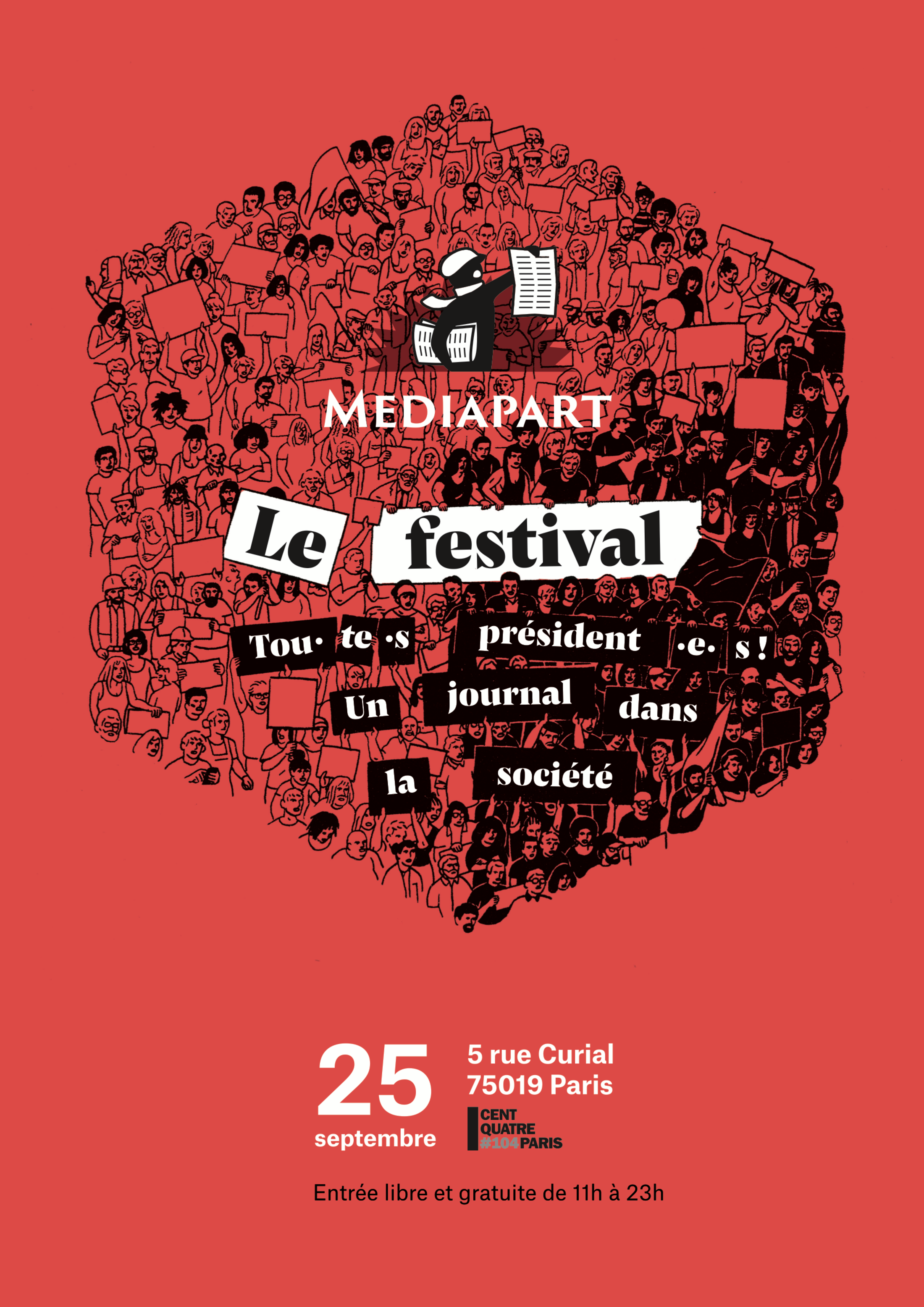 C’est le sens de ce festival ouverts à toutes et tous, en accès libre, que vous soyez déjà fidèle abonné à Mediapart ou juste curieux de nous connaître mieux. Rendez-vous le 25 septembre au Centquatre-Paris, de 11h à 23h pour une journée de rencontres ininterrompues avec l’équipe de Mediapart, un salon où tous nos partenaires tiendront des stands et animeront des discussions, une exposition surprise avec visite guidée par notre « pôle enquête », une librairie, des projections et des signatures avec des auteurs…
