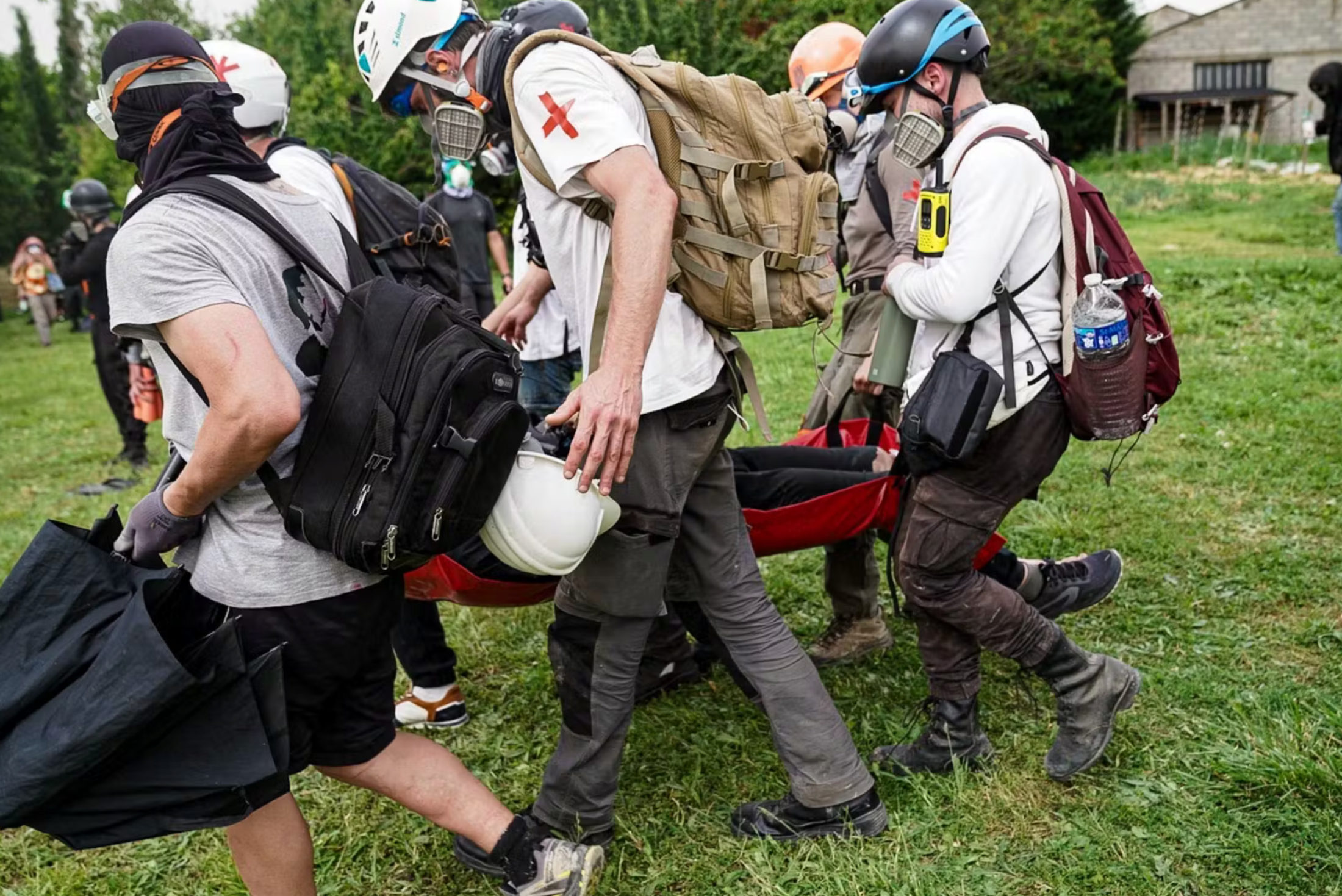 Samedi 8 juin, 10 personnes ont été évacué-es en urgence par les équipes médics de la mobilisation contre le chantier de l'A69.
