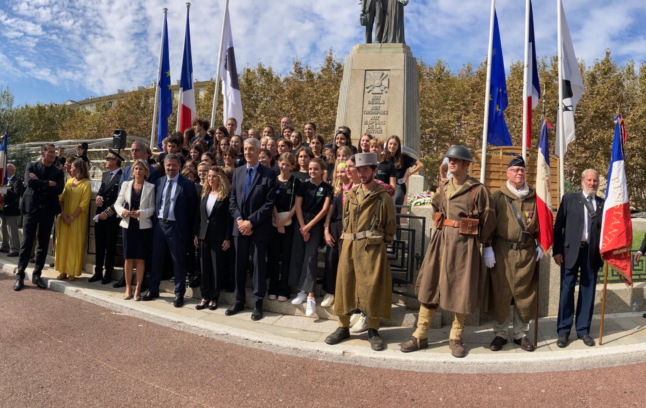 Castellani et Jean-Felix Acquaviva, de l’Association départementale des Anciens Résistants et Amis de la Résistance ( ANACR2B) , de Michel Prosic Préfet de la Haute-Corse, des délégués des Chocs, Tirailleurs et Goumiers marocains, de l’association USS Corsica, des élèves du lycée Fred Scamaroni et du collège Simon Vinciguerra.
