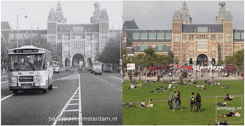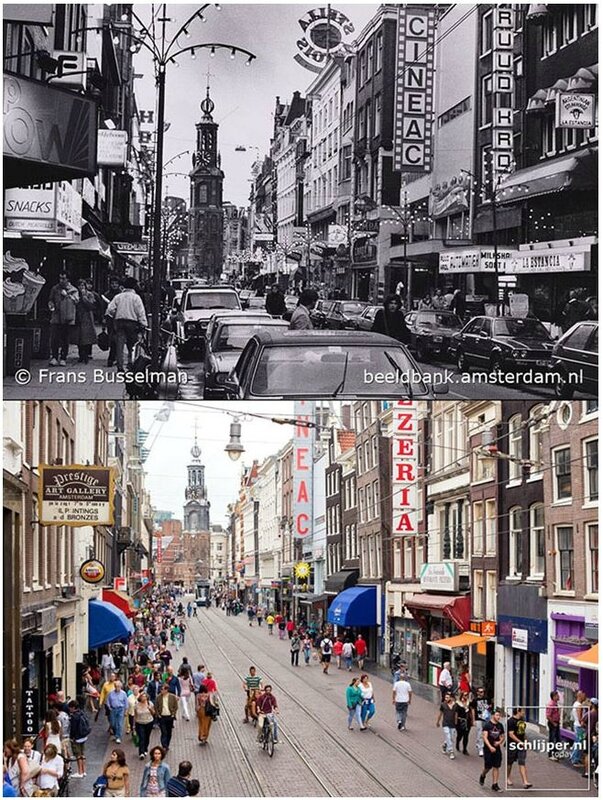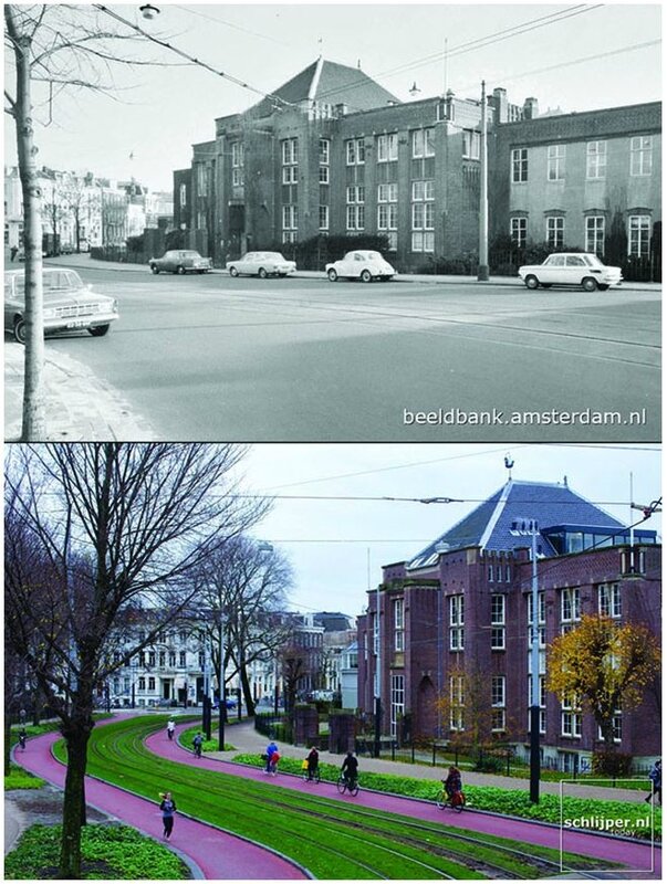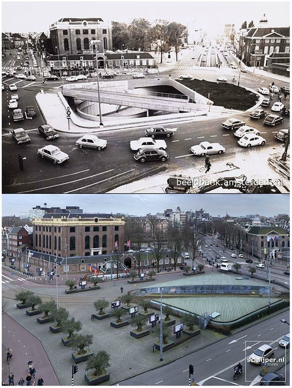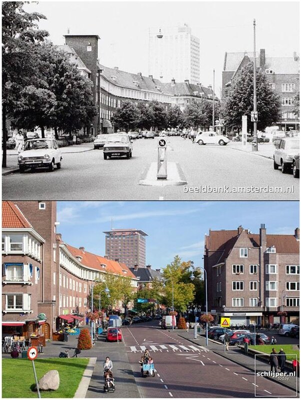 Plus spectaculaire encore, voici quelques rues et quartiers d'Amsterdam avant et après la transformation que tant d'entre nous estiment impossible dans nos villes. La preuve par l'image qu'en matière d'aménagement urbain il n'y a pas de fatalité culturelle ou géographique, mais seulement la force de la volonté.