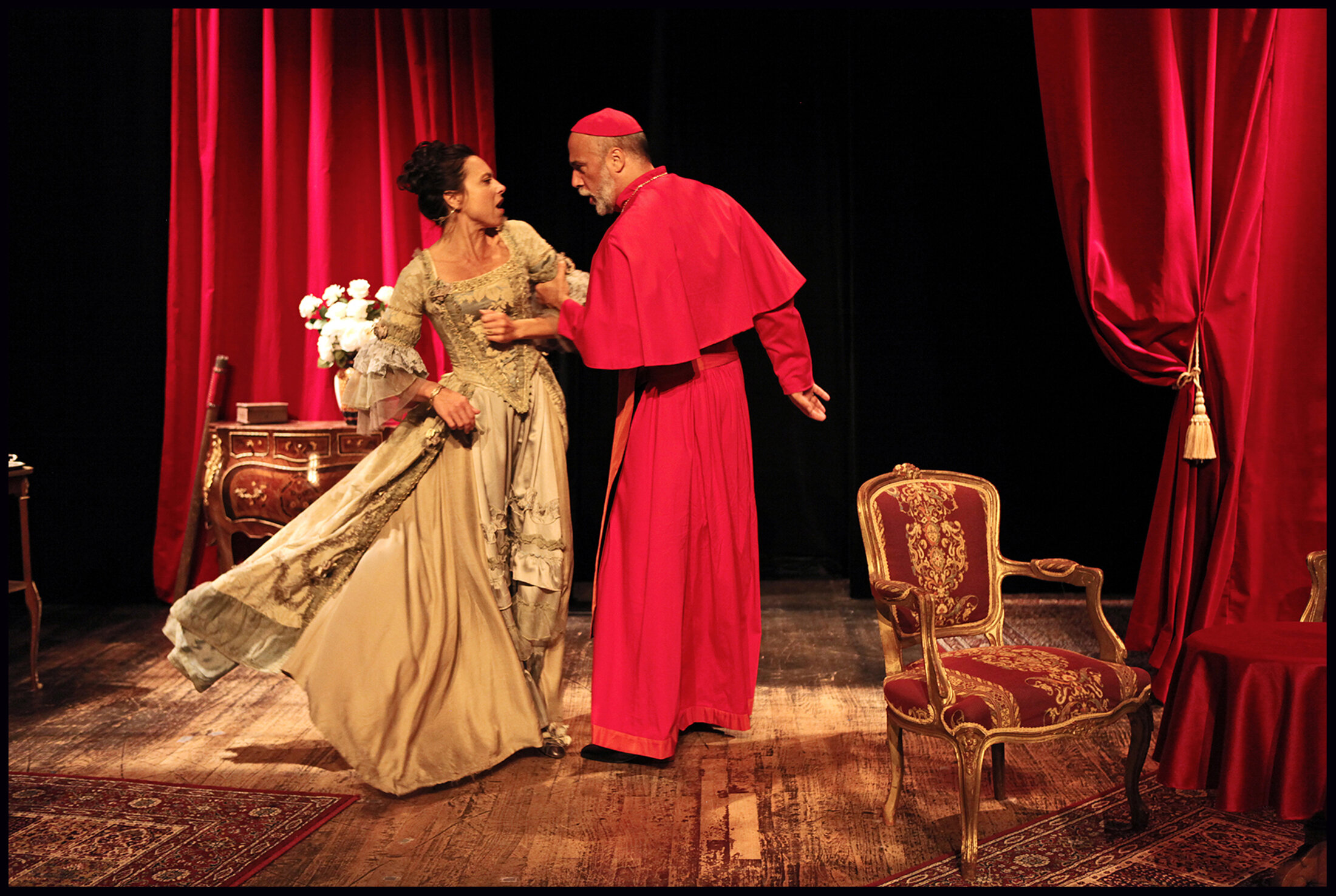 Il y a dans la vie des moments qui marquent plus que d’autres, des pièces qui résonnent en nous différemment. C’est le cas de Célimène et le Cardinal de Jacques Rampal pour Gaëlle Billaut-Danno. « Je m’en souviens comme si c’était hier, raconte-elle troublée, j’étais très jeune, quand je suis allée voir accompagnée de mes parents, la pièce à sa création. Sur scène, s’affrontaient Ludmila Mikaël et Gérard Desarthe, j’étais fascinée. À l’époque, je n’avais aucune intention d’être comédienne, mais j’ai ressenti quelque chose d’étrange en moi. Et je me suis secrètement dit que si un jour je devais monter sur les planches, ce serait pour jouer cette femme forte, drôle et intelligente. Je me souviens que le texte fin, riche, écrit dans la langue du XVIIe siècle et si magistralement interprété m’avait transportée à l’époque, tant il paraissait actuel. » Et puis des années plus tard, la vie lui a fait un nouveau cadeau. « C’était un peu comme un rêve de jeune fille, raconte-t-elle. Un jour, lors d’un dîner d’après-représentation d’un Tramway nommé Désir, nous étions 15, à l’autre bout de la tablée, j’entends parler de Célimène et du Cardinal. Je tends l’oreille et découvre que l’un des convives est Jacques Rampal. On commence à discuter, le courant passe très vite. Il me complimente sur mon interprétation et se met à rêver de me voir défendre Célimène sur scène. » Six ans plus tard, il appelle la comédienne pour lui proposer de partir en tournée en Inde avec la pièce. C’est le début d’une aventure singulière, étonnante qui perdure aujourd’hui encore, malgré le décès, il y a un peu plus de deux ans du dramaturge. « Avec Jacques, se remémore-t-elle avec émotion, nous avons tout monté ensemble. Rapidement, nous nous sommes mis d’accord pour demander à Pierre Azéma de jouer le rôle du Cardinal. Et nous sommes parti en Inde, un peu la fleur au fusil je l’avoue. Ce furent trois semaines extraordinaires. En rentrant, Il m’est apparu évident que l’aventure ne pouvait s’arrêter là. Nous avons donc confié la reprise de la mise en scène à Pascal Faber et Bénédicte Bailby. Puis j’ai proposé le projet à Christophe Segura, un ami, producteur audacieux. Après quelques brèves hésitations, il a décidé de nous suivre. On a fait, trois festivals d’Avignon, une reprise au Théâtre Michel, et plusieurs exploitations à la Comédie de Bastillesoit plus de 350 représentations. Le succès ne s’est jamais démenti. C’est pour moi un cadeau inestimable que m’a fait Jacques, d’autant que ce rôle m’a permis d’être nominée aux Molières. Ça n’a pas de prix surtout quand on sait combien ce métier est fait de questionnements et combien la reconnaissance de nos pairs est importante. »