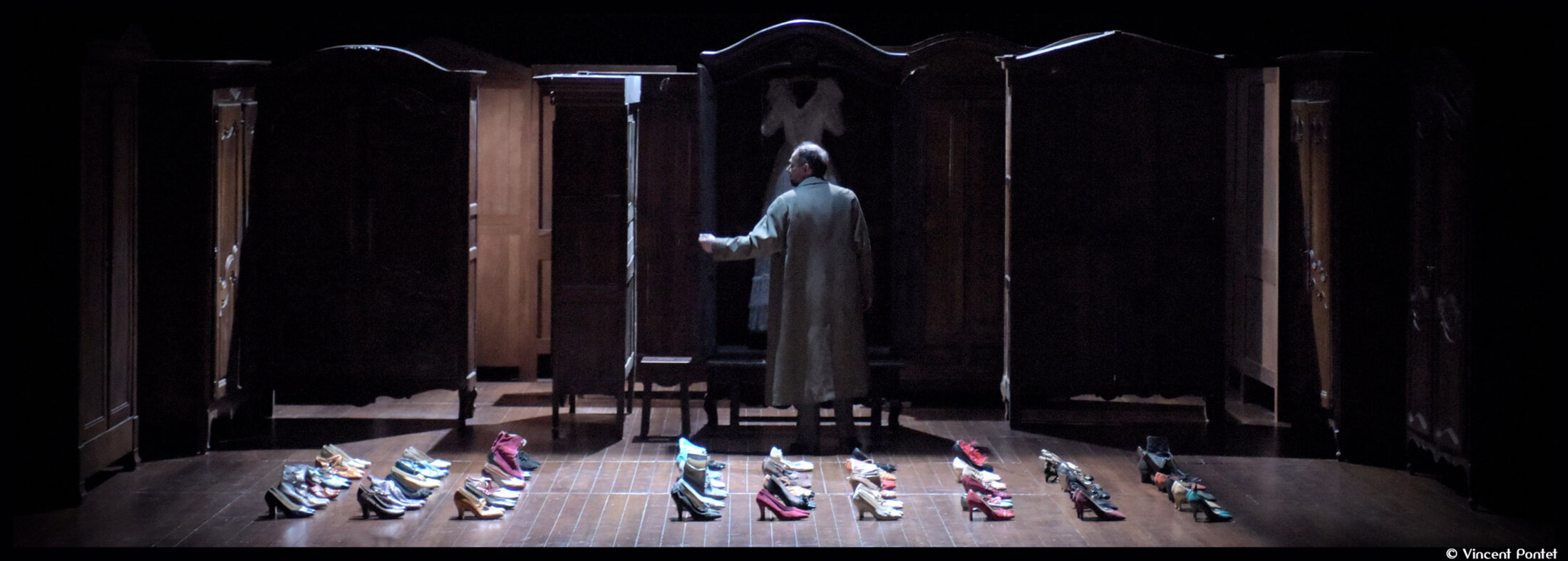 Une lumière sourde, tamisée, éclaire un sol jonché d’escarpins parfaitement alignés, de bottines de toutes couleurs, de toutes formes, de tous styles. Vestiges d’un temps passé, d’un monde coupé de l’extérieur, réservé aux femmes, reliques de celles qui, un instant, ont retenu l’attention d’un homme, d’un roi. Paris est déjà loin que se dessine dans cet étrange et labyrinthique décor peuplé de vieilles et massives armoires en bois, le sérail du palais de Topkapi où règne Roxane (rayonnante Clotilde de Bayser), favorite d’Amurat, sultan sanguinaire et violent parti conquérir Babylone.