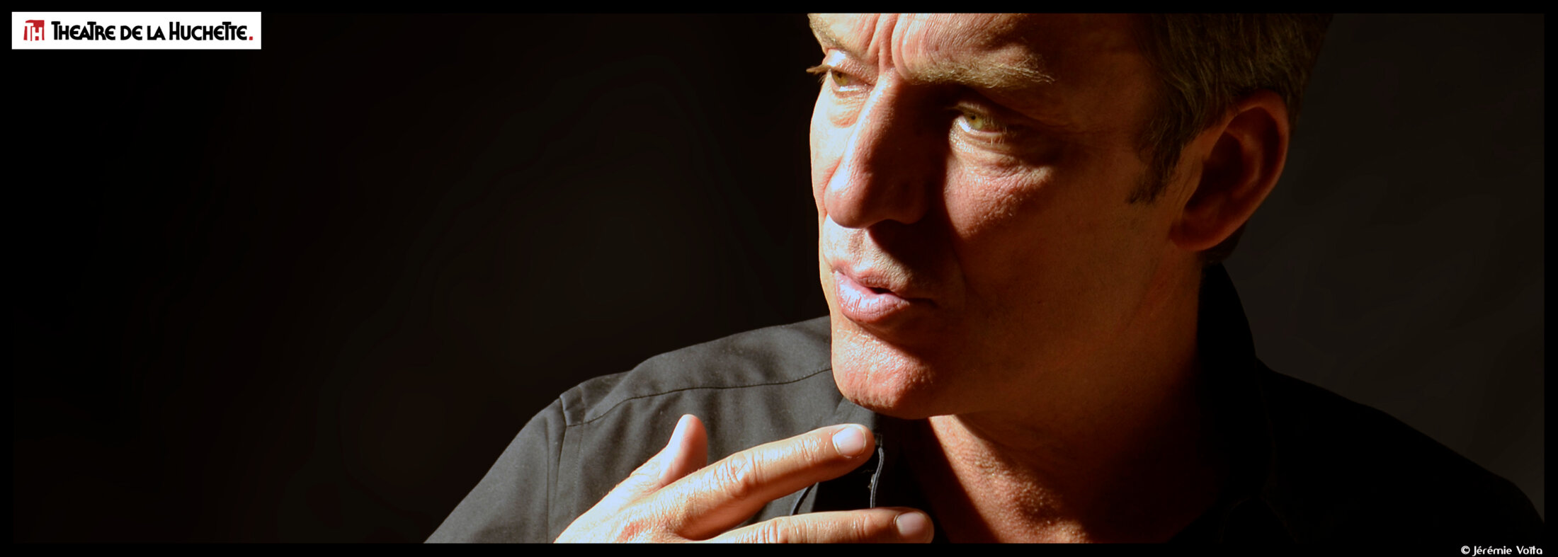 Dans un écrin noir velours, Michel Voïta fait son entrée. Il se dirige lentement vers la chaise et la table en bois élimé qui trônent au centre de l’étroite scène et qui servent d’unique décor. Vêtu de sombre, il s’installe tranquillement, un livre de poche à la main. C’est un exemplaire du premier tome d’A la recherche du temps perdu de Marcel Proust, intitulé Du côté de chez Swan. De sa voix chaude, suave, il commence la lecture d’un premier extrait du roman. Très vite, il dérive, pose le texte et nous embarque sur des routes chaotiques de campagne.
