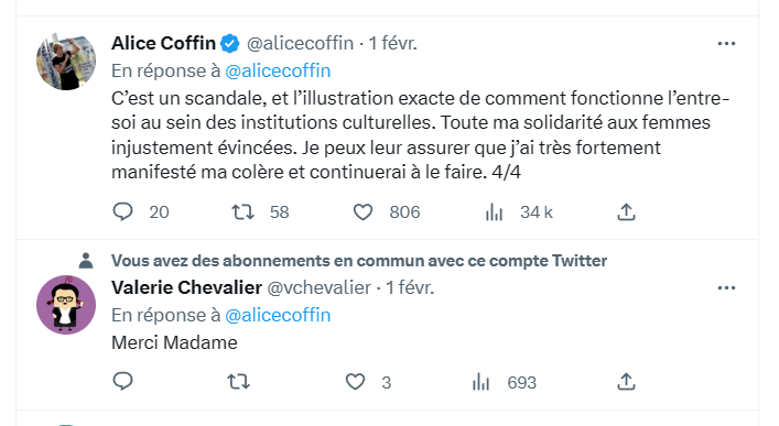 VALERIE CHEVALIER : Ce sont les décideurs qui sont machos : quelle place accorde-t-on réellement aux femmes ? Quels postes occupent-elles ? Elles sont souvent numéro deux alors qu’elles ont les capacités à être numéro un. La plupart du temps, elles servent d’alibi ou de justification de quotas dans les candidatures ! Souvent, les jeunes femmes ne candidatent même pas, sûres qu’au bout du compte, c’est un homme qui sera choisi ! Certaines “osent encore l’ouvrir” et se faire entendre. Je suis reconnaissante envers Alice Coffin, une vraie activiste, une femme qui porte une parole et qui a su dénoncer les faits qui ont entouré la nomination d’Olivier Py.