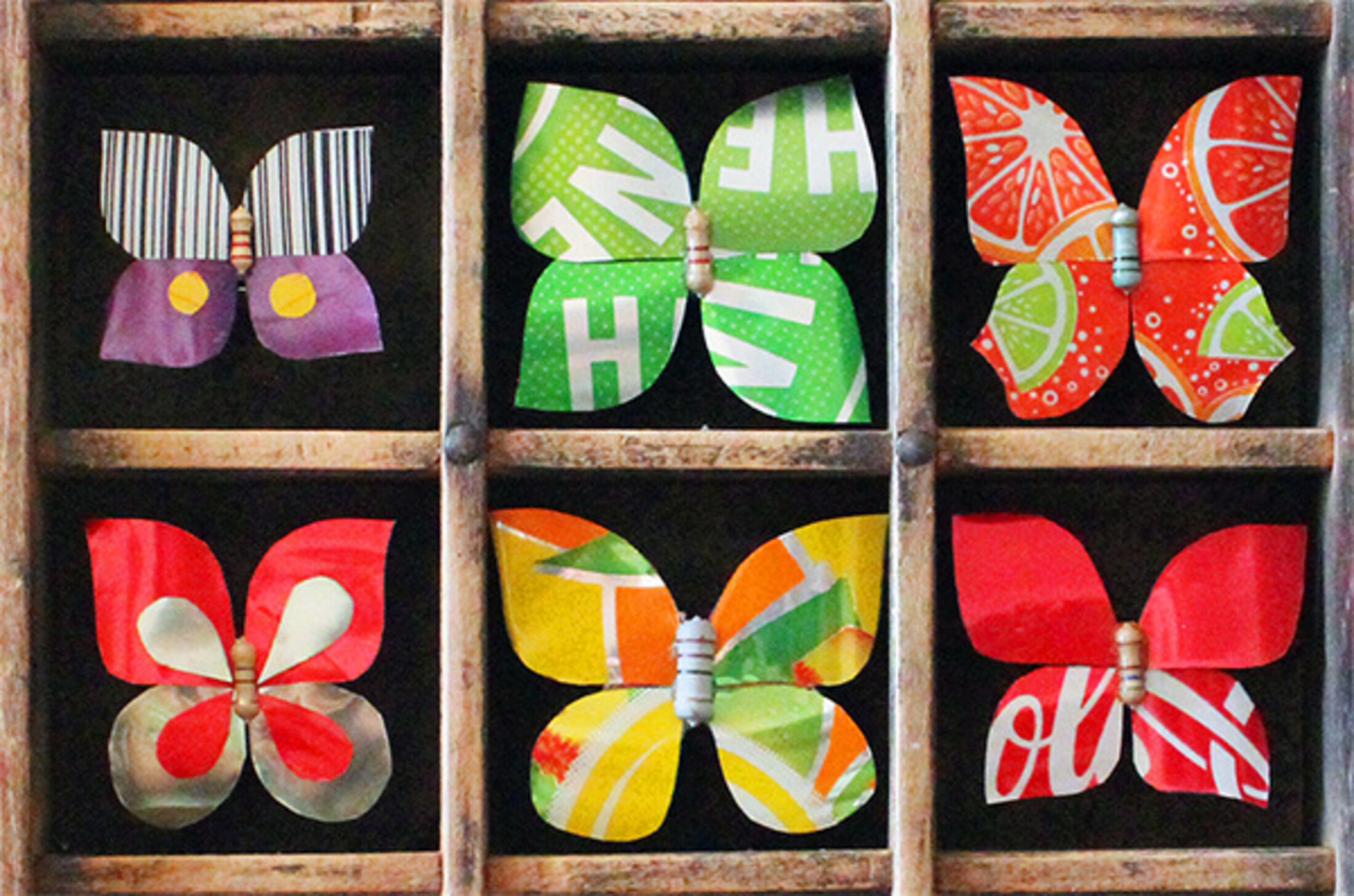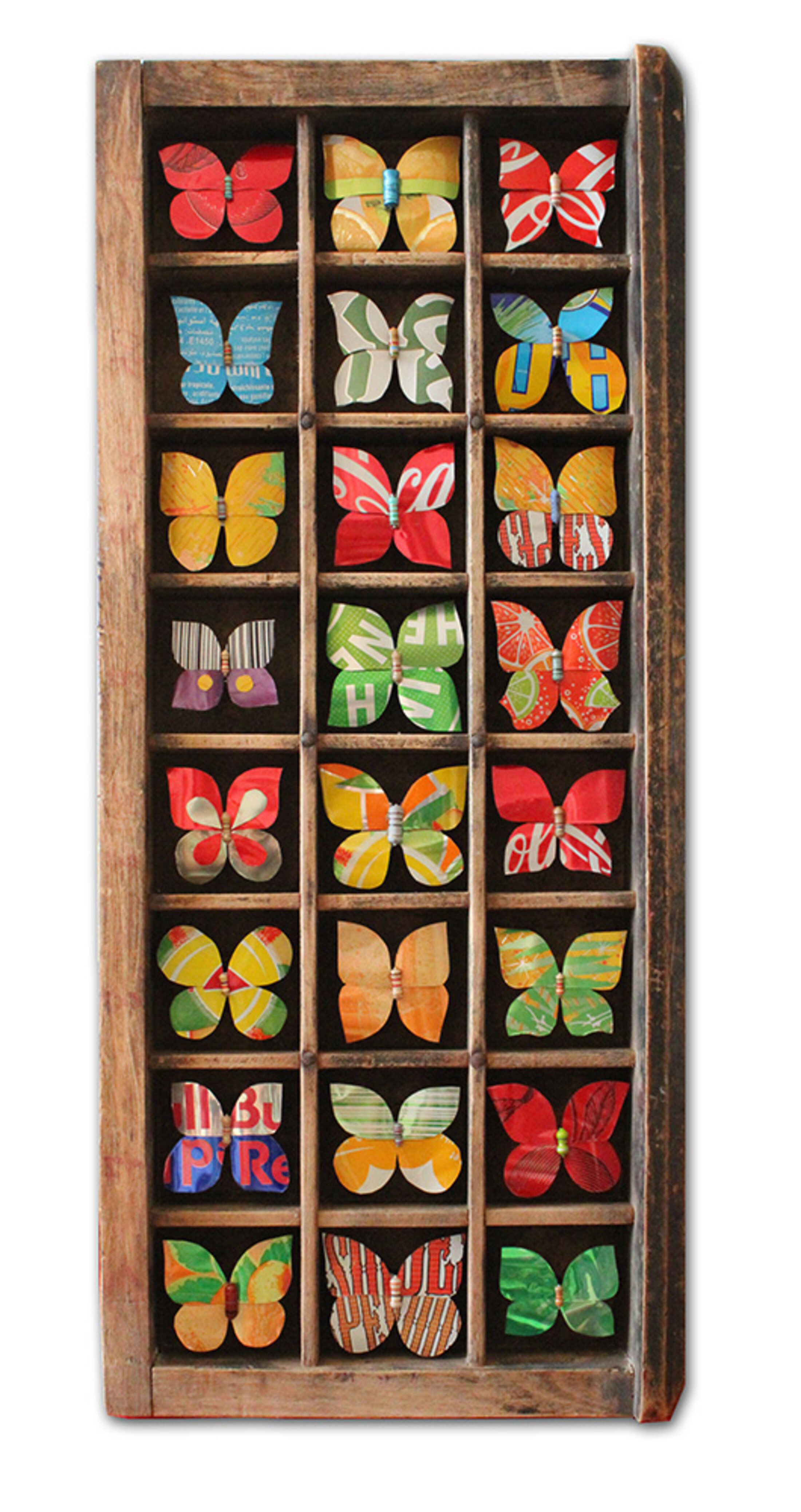 Mais je préfère parler "Surcyclage"et des papillons, ceux que je crée à partir de cette matière inépuisable et présente partout. De ces papillons magnifiques, colorés graciles et éphémères dont une grande partie a disparu de puis mon enfance à cause de, justement, la pollution générée par cette consommation compulsive.