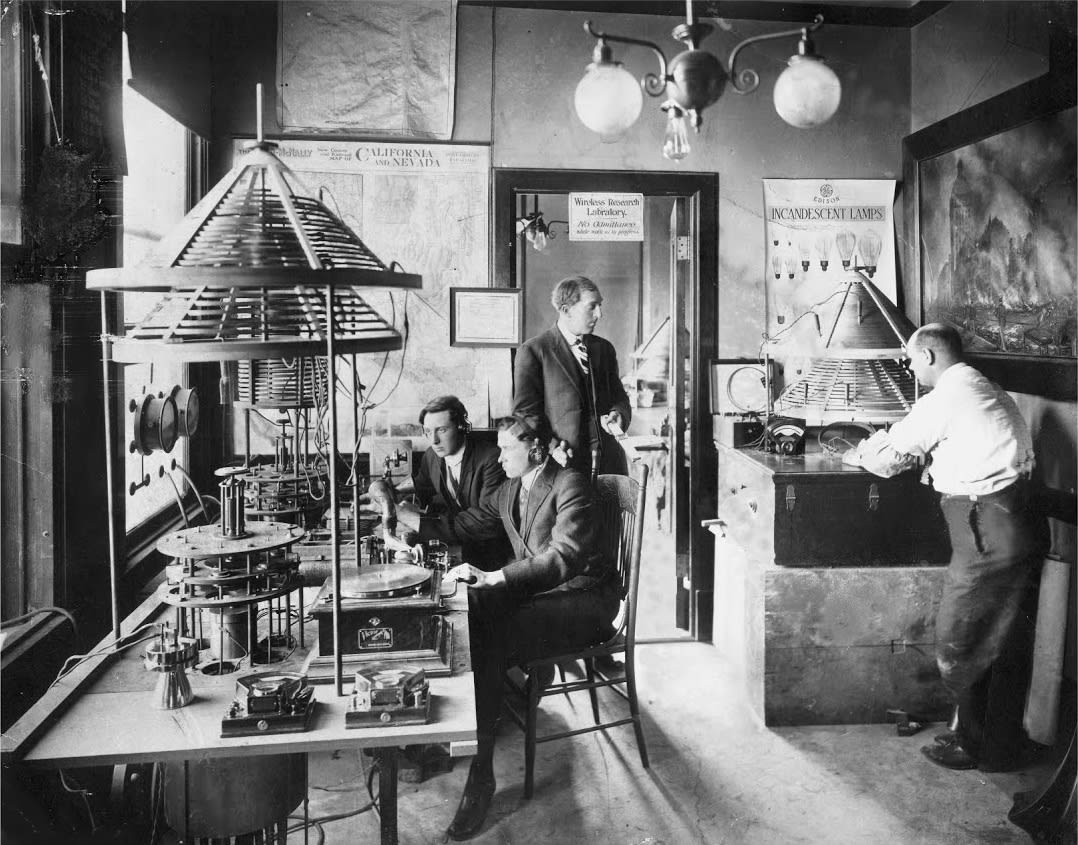 Au début des années 1900, plusieurs ingénieurs et scientifiques commencent à expérimenter des outils d’amplification des ondes sonores avant de parvenir à envoyer et recevoir des signaux. La première radio diffuse des programmes réguliers dès 1909, à San Jose. Dans la foulée, Cyril Elwell, diplômé de Stanford, rachète le brevet d’un transmetteur au Danois Paulsen et fonde la Federal Telegraph Corporation. Il recrute rapidement l’ingénieur Lee de Forest, inventeur du tube à vide qui permet d’amplifier, émettre et recevoir un signal électronique. Cet ancêtre du semi-conducteur, également appelé lampe en français (les musiciens reconnaîtront les amplis à lampes) joue un rôle déterminant dans l’éclosion de l’électronique. La FTC débute la commercialisation d’un système radio et obtient dès 1913 un contrat déterminant avec l’US Navy.