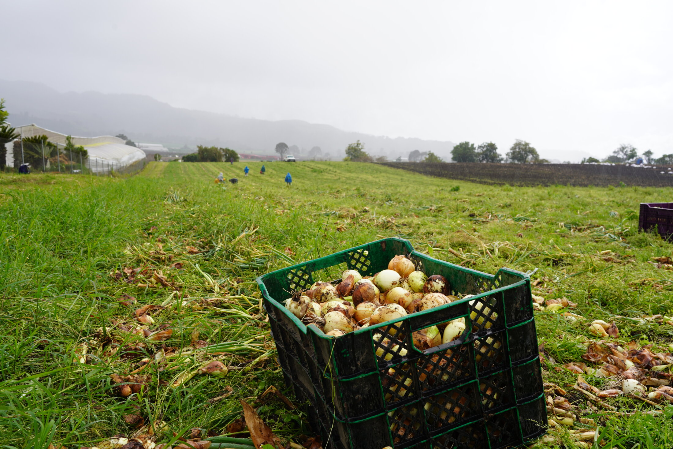 Le Cerro Punta est parsemé de grandes serres qui jouxtent les champs. Alexander Marcucci est le superviseur de la production de l'entreprise Adriatic SA. Aujourd'hui, il travaille dans le champ d'oignons avec son équipe. Les caisses remplies que transportent ses coéquipiers ne sont pas satisfaisantes pour lui. Il voit plutôt les tas d'oignons faméliques étendus au sol. « Ça c'est invendable. C'est de la pure perte. Les grossistes ne les acceptent pas. »