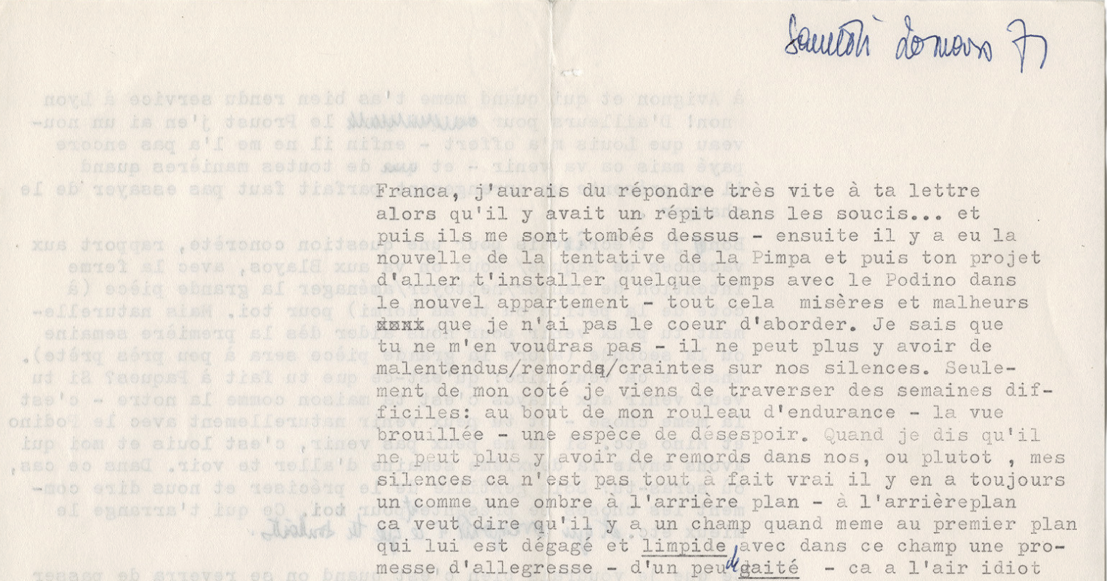 Plutôt que de trancher cette question épineuse, je préfère citer un extrait d’une autre très belle lettre de Legotien qui mérite d’être connue. En 1961, elle écrit à Franca Madonia, toujours à propos de son rôle d’aidante :