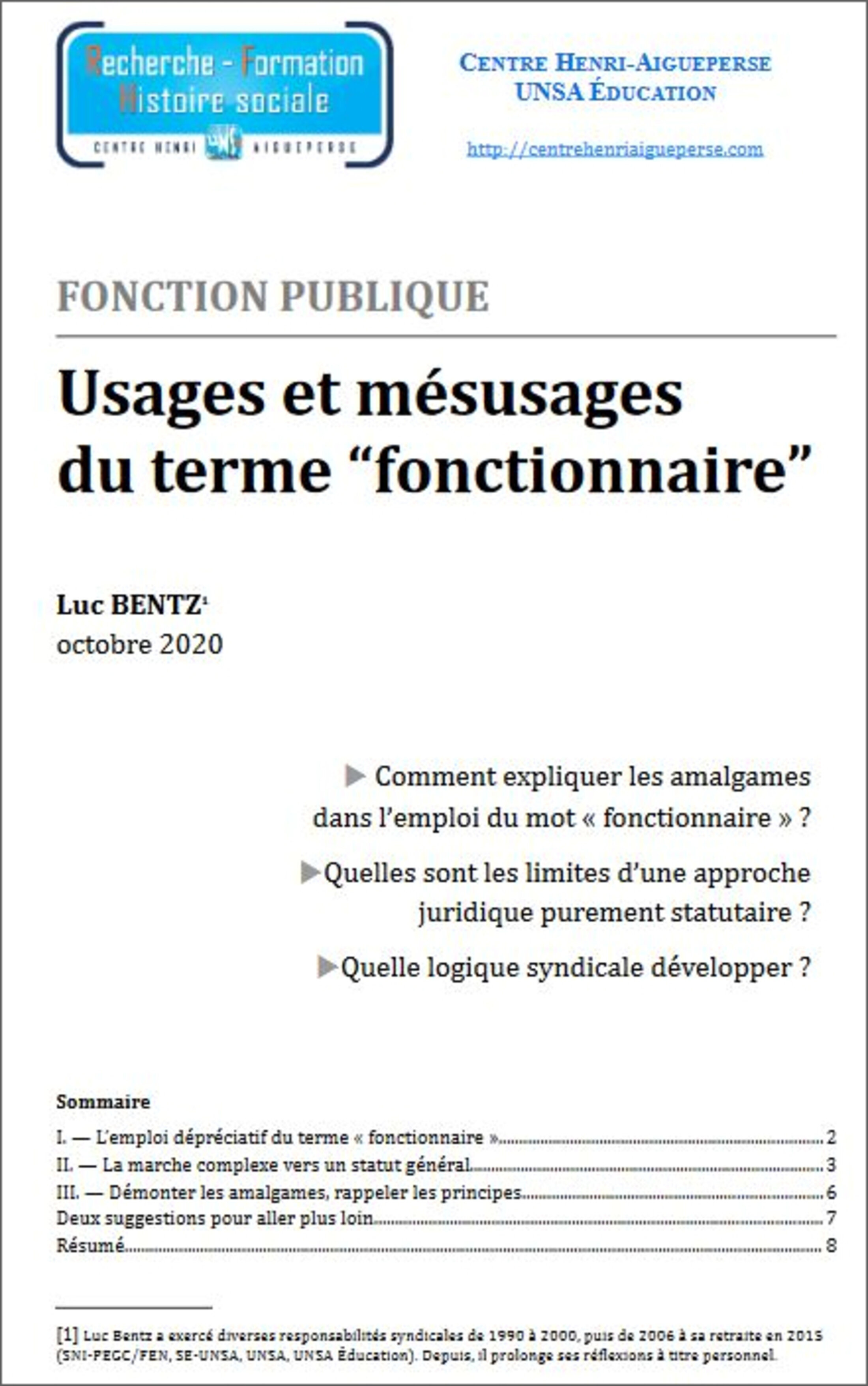 Je me suis efforcé de répondre à ces questions dans une courte note (8 pages aérées dont un résumé) rédigée pour le Centre Henri-Aigueperse, centre d'histoire sociale et de recherche de l'UNSA Éducation (voit les liens d'accès plus bas).