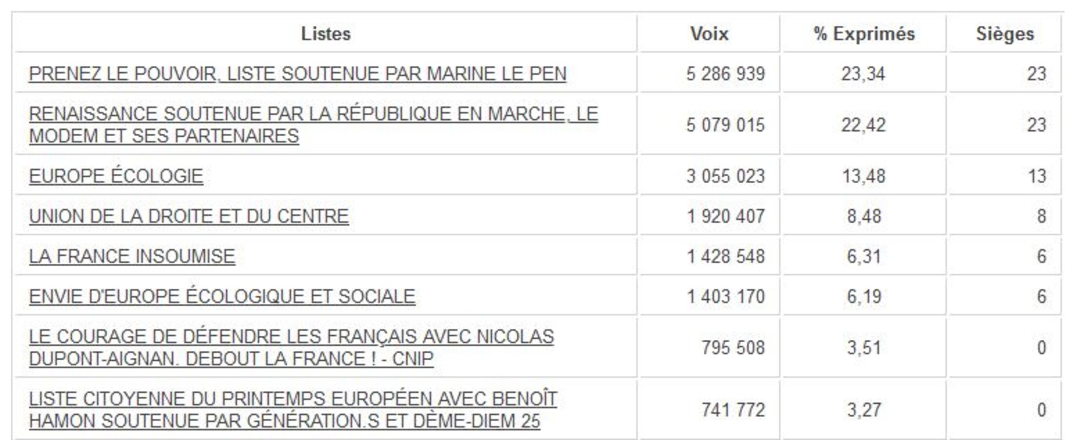 Et de préciser qu'après un sondage de décembre 2018 donnant 12 % d'intentions de vote aux élections européennes à une liste «GJ», la réalité des urnes — après maints déchirements, allant jusqu'aux menaces* — a été plus cruelle lors du scrutin du 26 mai 2019: 0,54 % pour «Alliance jaune» conduite par le chanteur Francis Lalanne; 0,01 % pour «Évolution citoyenne», menée par Christophe Chalençon.