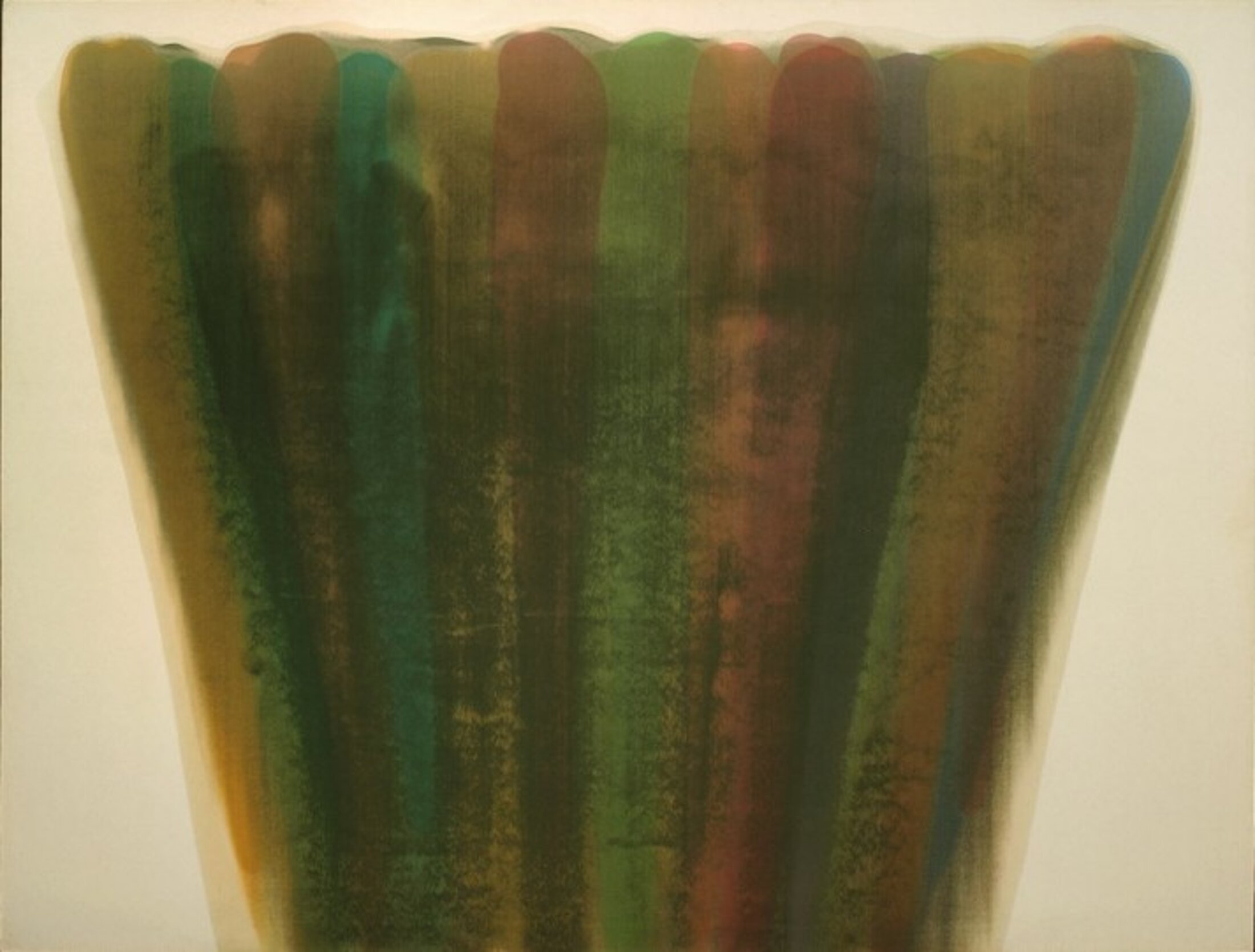 La grande exposition de l’Orangerie, Nymphéas. L’abstraction américaine et le dernier Monet, revient sur un moment majeur de cette proximité et de la fécondité formelle qui en a résulté : explicitement, en donnant à voir un ensemble représentatif de tableaux américains modernes côte à côte avec une sélection de peintures du Monet de la dernière période et avec les Nymphéas qui jouxtent l’exposition, de parenté manifeste ; implicitement, avec la résurgence présente dans les œuvres importées des apports de Matisse, Picasso, Miró, principalement, tous issus de la scène parisienne du XXe siècle. Ainsi le principal théoricien du mouvement, Clement Greenberg, tout d’abord indifférent aux débordements chromatiques du dernier Monet, mais dont la fréquentation des peintres lui a ouvert les yeux, peut-il déclarer dans les années 1950 : « Il a suffi de quelques années pour que plusieurs Américains, qui allaient devenir les plus novateurs des peintres d’avant-garde, redécouvrent Monet avec enthousiasme. Ils n’avaient pourtant jamais vu autrement qu’en reproduction ces formidables premiers plans que sont les derniers Nymphéas […]. Ses larges barbouillages de peinture éclaboussée sur la toile et ses gribouillages leur montraient aussi que la peinture sur toile devait pouvoir respirer ; et que, lorsqu’elle respirait, elle exhalait d’abord et surtout la couleur — par champs et par zones plutôt que par formes ; qu’enfin cette couleur devait être sollicitée de la surface autant qu’y être appliquée. C’est sous l’égide de la dernière période de Monet que ces jeunes Américains commencèrent à rejeter le dessin sculptural […]qui leur paraissait trop fignolé et trop joli pour se tourner vers le dessin par grandes “plages”, le dessin “anti-dessin” » [2]. Cette présentation de l’Orangerie, qui s’inscrit dans un cycle d’expositions consacré à la couleur, offre un éventail représentatif des grands peintres de l’expressionnisme abstrait, qu’on a parfois qualifiés d’« abstraits analytiques » et pour certains — notamment ceux dont les fondements de leur approche créative se sont élaborés lorsqu’ils ont séjourné en France — d’« impressionnistes abstraits » [3]. La correspondance avec les peintures de Giverny de Monet des années 1910-1920 est mise en évidence par le rapprochement des œuvres dans l’exposition où transparaît clairement un intérêt commun pour la profusion chromatique naturelle et la transgression des normes classiques d’occupation de la surface du tableau. Certes, on peut regretter quelques absences, en particulier celle de Milton Resnick, encore sous-estimé ici, qu’une exposition récente aux Abattoirs de Toulouse a néanmoins pu faire découvrir au public occitan (voir reproduction plus bas) [4]. Au contraire Helen Frankenthaler, dont j’ai regretté dans un billet précédent l’injustice de sa méconnaissance en France [5], est honorablement représentée. La possibilité de voir ces toiles dans leur réalité est inestimable car les reproductions ne rendent pas compte de l’impression d’ampleur qui se dégage à leur contact, où l’ajustement du corps qui regarde à leurs dimensions tient une place capitale [6].
