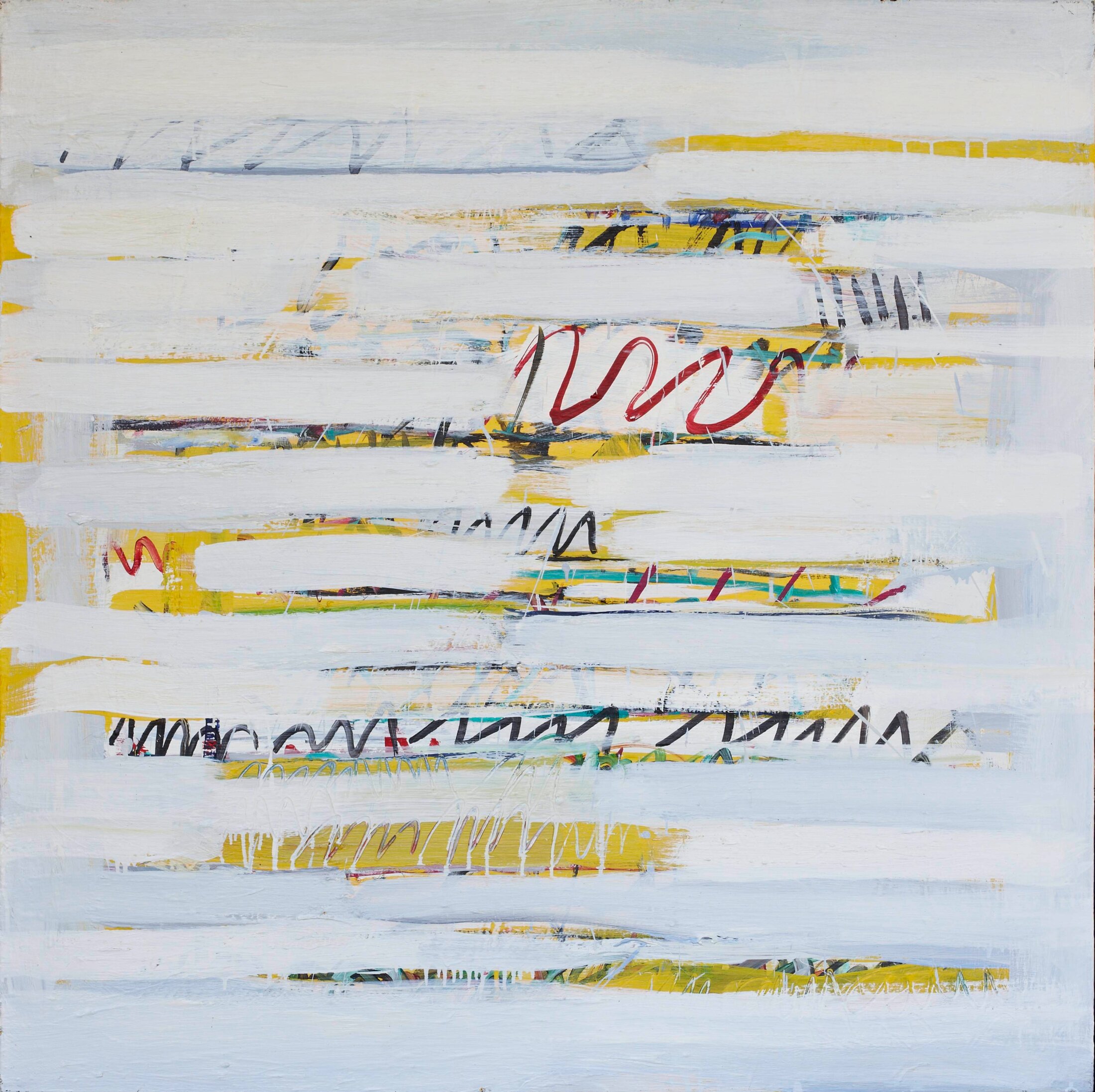 Comment naît, comment survient une peinture d’André Nouyrit ? Progressivement. Dans l’effort et la ténacité, son esprit tout entier occupé à l’imminence de l’émotion et son accomplissement formel. Il veut, dit-il, « provoquer un choc » (expurger du prévenu corporel, de la prédestination physiologiquement dotée et contractée). Posté, donc, à hauteur des événements d’une vie, au point d’impact des réalités qui se heurtent. Le pictural au plus près de son élaboration constitutive : plans de couleur larges et frontaux – immanquables au point de faire oublier qu’on s’y prête –, un préposé à l’inexactitude vient s’y glisser en rythme-éclair ou soubassement disjonctif. C’est soi, détail converti à la surface, récupéré de l’indistinct conforme, vivante désinence passagère et mobile (on voit des accélérations). Grave et joyeux. Soi en points de suspension, ligne droite, courbe ou éclats… vocabulaire consistant, disert ainsi livré au monde. La scansion chromatique injectée en saccades, en déploiement d’accords nerveux confidentiels comme surgis sans prévenir d’un art roman sauvage et proactif. Volubilité de la couleur ainsi délivrée dans l’espace, immédiatement redistributive : vitale et non propriétaire ; insupportable (d’une infraction subjective inconcevable, incalculable).
