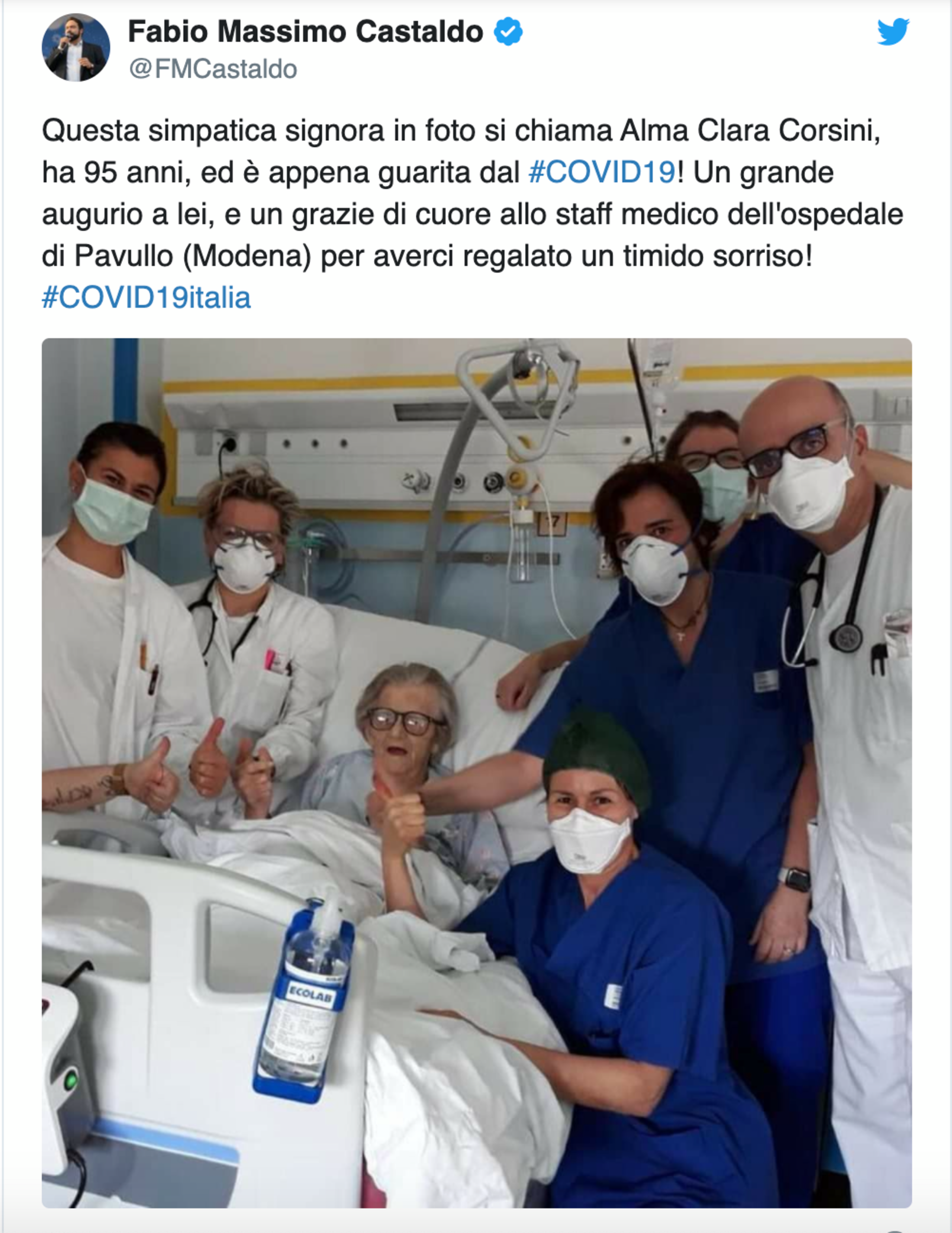 Mais dans cette crise sanitaire, les bonnes nouvelles sont aussi présentes. Moins exposées par les médias, elles ont toutefois le mérite d'être là. A l'image d'Alma Clara Corsini. Cette Italienne de 95 ans a guéri du Covid-19. L'hôpital de Pavullo l'a annoncé mardi 24 mars et a même autorisé la vieille dame à rentrer chez elle. Un miracle dira-t-on. Et pourtant d'autres personnes âgées ont réussi à surmonter la maladie. C'est le cas de George, un Français de 86 ans, de Bernard, 65 ans, un habitant de l'Oise et de son épouse âgée de 64 ans et de beaucoup d'autres. Selon le Chutian Metropolis Daily, comme le rapporte France 24, une Chinoise de 103 ans, est elle aussi parvenu à guérir du virus. Jeudi 26 mars, le directeur général de la Santé, Jérôme Salomon indiquait que 13 904 personnes avaient été hospitalisées pour une maladie liée au Covid-19, et que « 4 948 personnes sont sorties guéries de l’hôpital ».