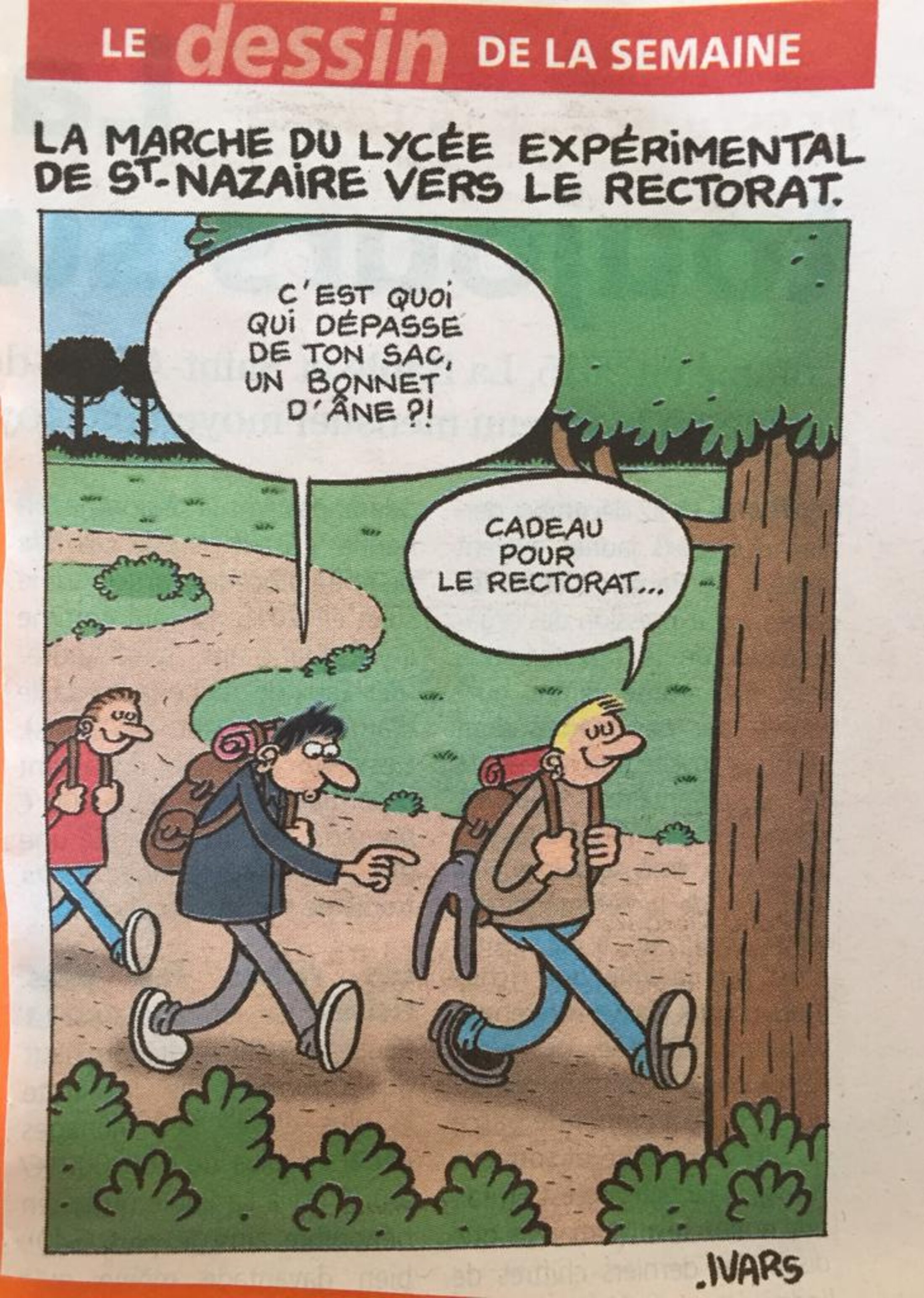 Pendant ce temps, l’Écho de la Presqu’île choisit la marche du lycée pour son dessin de la semaine.
