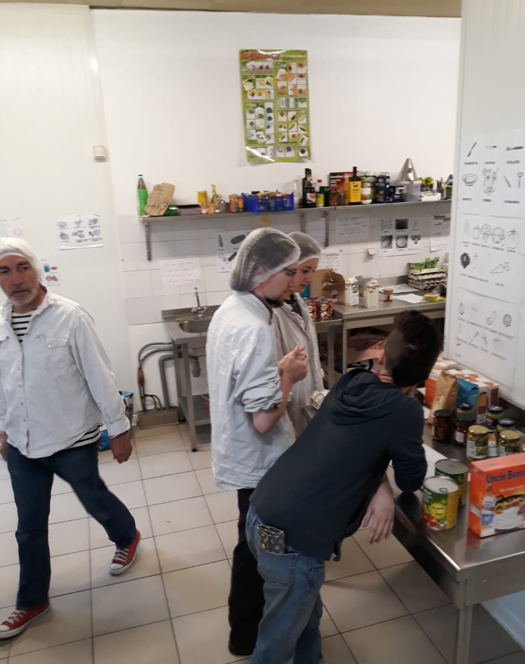 Un groupe est resté sur place au lycée pour pouvoir préparer de quoi sustenter les marcheurs.