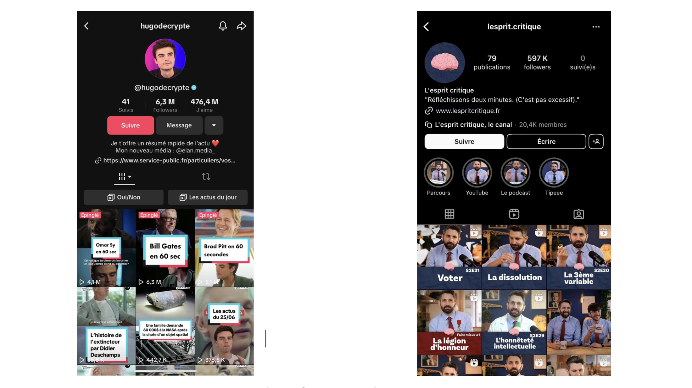 Cette guerre des édits entre “droitistes”et “gauchistes” est beaucoup plus importante qu’elle en à l’air, comparé à ce que certains croient, les jeunes aussi s’informent, mais différemment selon une étude de l’Ifop, les 18-25 ans sont 17 % à s’informer sur Instagram, 10% sur Tik Tok et 16% sur X (comparé à 6% en 2017). Aujourd’hui, plus de 50 millions de Français·es utilisent au moins un média social et ce sont les 13-24 ans qui les utilisent le plus. Il existe des comptes qui permettent aux jeunes de s’informer sur l’actualité. Parmi les plus connus, @hugodecrypte qui compte sur la plateforme Tik Tok plus de 6 millions d’abonnés ou bien @lesprit.critique qui compte quant à lui plus de 590 000 sur Instagram. Les deux “influenceurs” possèdent chacun un compte instagram, youtube, tiktok et un podcast dans lequel ils parlent politique et actualité.