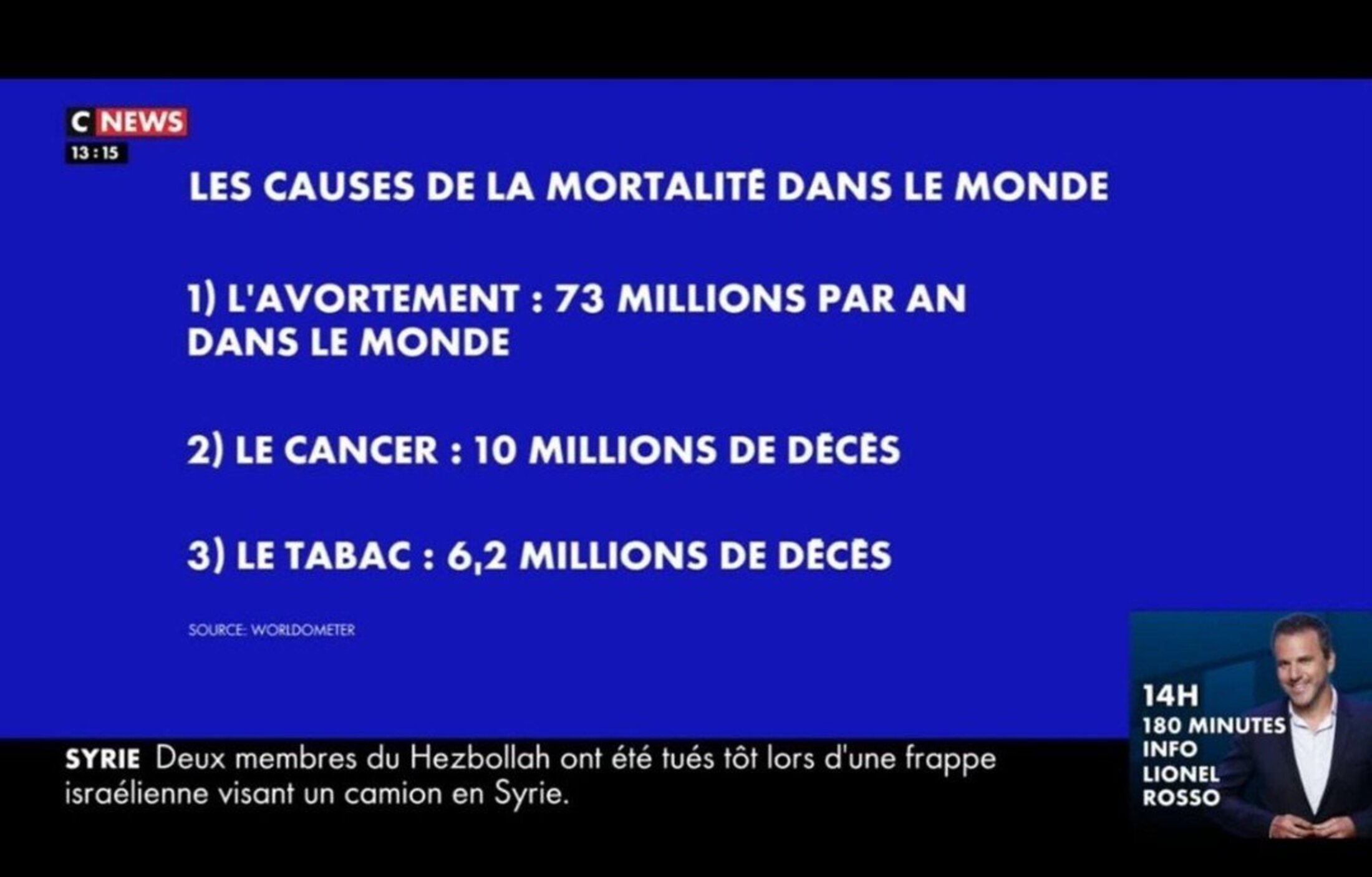 Abject : Sur CNEWS, l'avortement est qualifié de "première cause de mortalité dans le monde". Devant le cancer.