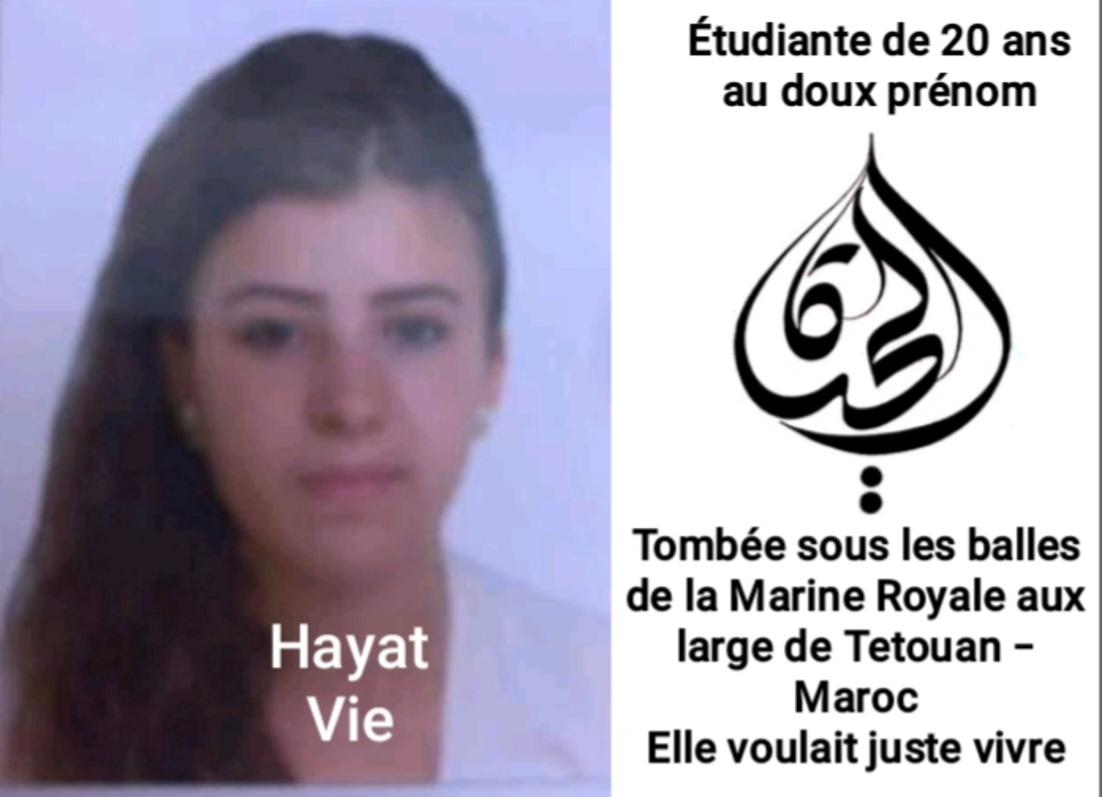 Sur ordre de sa Majesté Hayet Belkacem vient de succomber aux tirs des snipers d'Etat en mer, la marine de sa majesté .