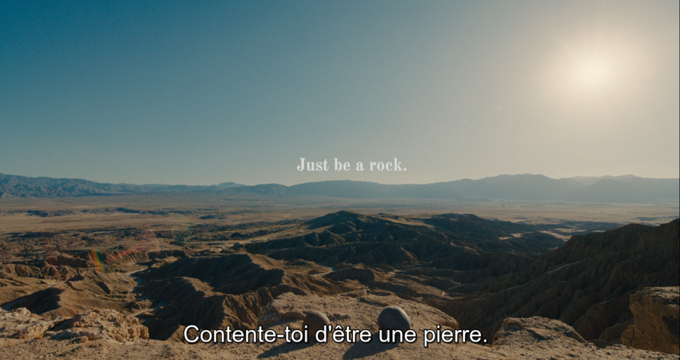 « Je ne suis rien, et je ne puis vouloir être rien », a écrit mon poète préféré. La dép’ n’aide pas à se sentir digne d’être quelque chose, ou même de le vouloir, ou alors être un caillou, un caillou posé dans le rien, dans le désert d’un monde impropice à la vie, ainsi que le sont la plupart des mondes possible, comme dans cette scène magnifique de Everything everywhere all at once, où est dite cette phrase définitive sur nos existences : « Des êtres stupides et insignifiants. C’est genre tout ce qu’on est ». Même si le film nous présente finalement une morale toute simple : quand tout est foutu dans l’ensemble des univers possibles, il y a encore l’amour.