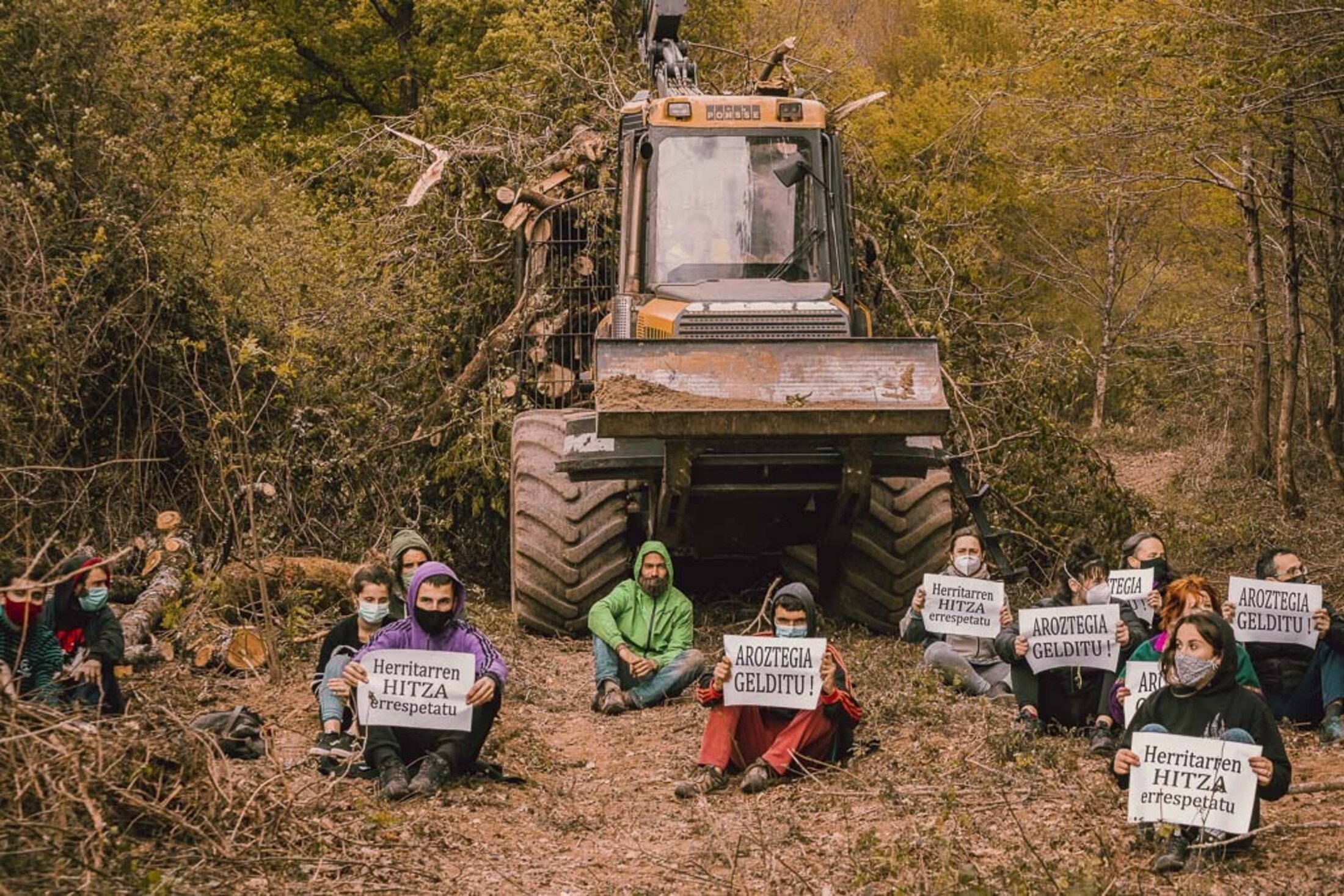 Enfin, en 2021, sans avoir toutes les autorisations nécessaires, des machines sont introduites en toute impunité et sans permis afin de lancer les travaux. Les habitants organisent un campement sur le terrain même du projet Aroztegi dans le but de manifester leur opposition. En s’asseyant devant les machines, ils empêchent la poursuite des travaux. Ce campement durera 13 jours.