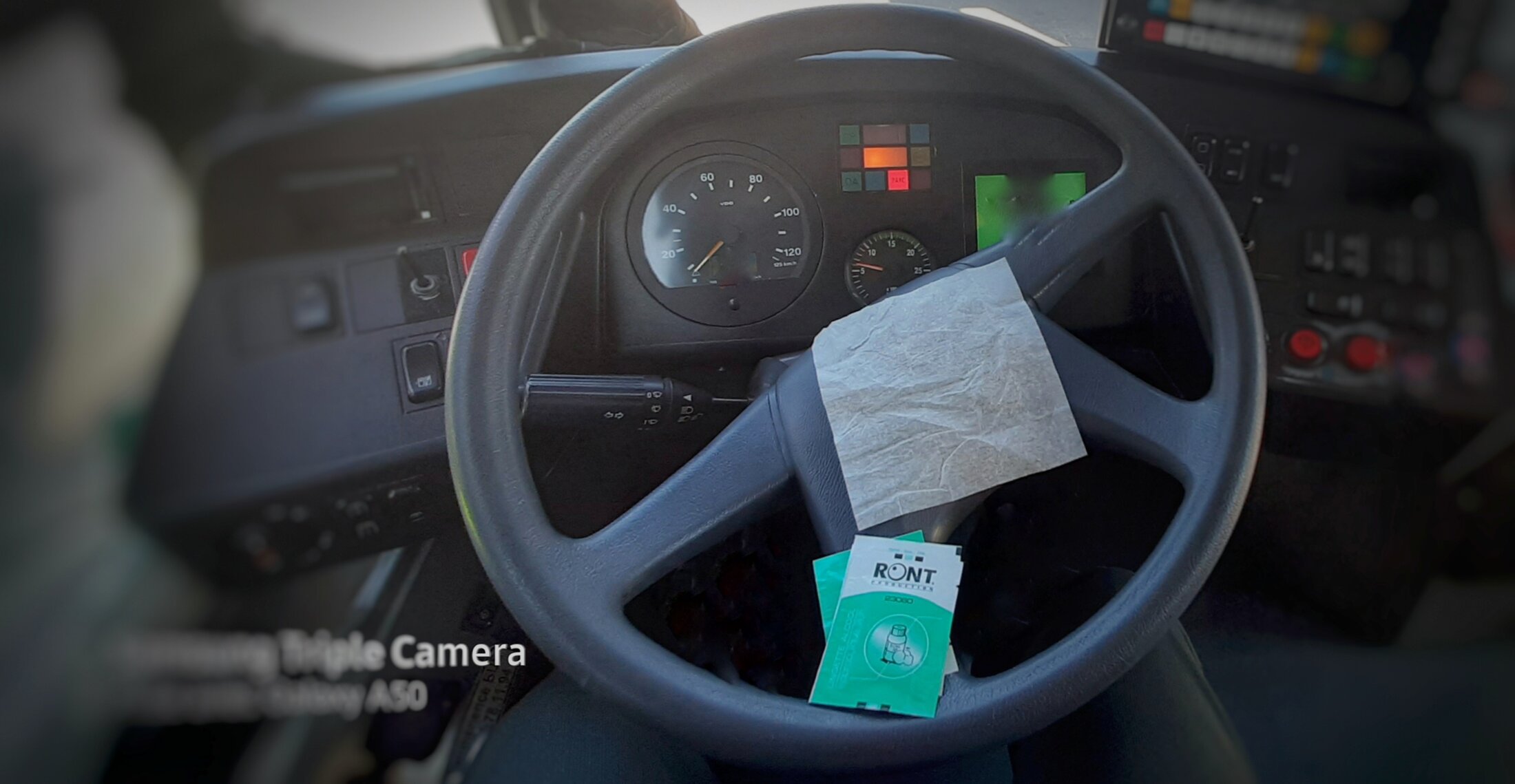 Un sachet avec 5 lingettes désinfectante. Avec ces « rinces doigts » essayez de désinfecter un tableau de bord de bus. Le volant. La vingtaine de boutons. Poignée de porte. Poignée de fenêtre. Le téléphone pour appeler la régulation. L'ICS de contrôle. Les manettes de relevage du siège et j'en passe. Du coup, oui, nous prenons un même bus toute la journée. Et nous nous repassons les bus entre collègue sans désinfection.