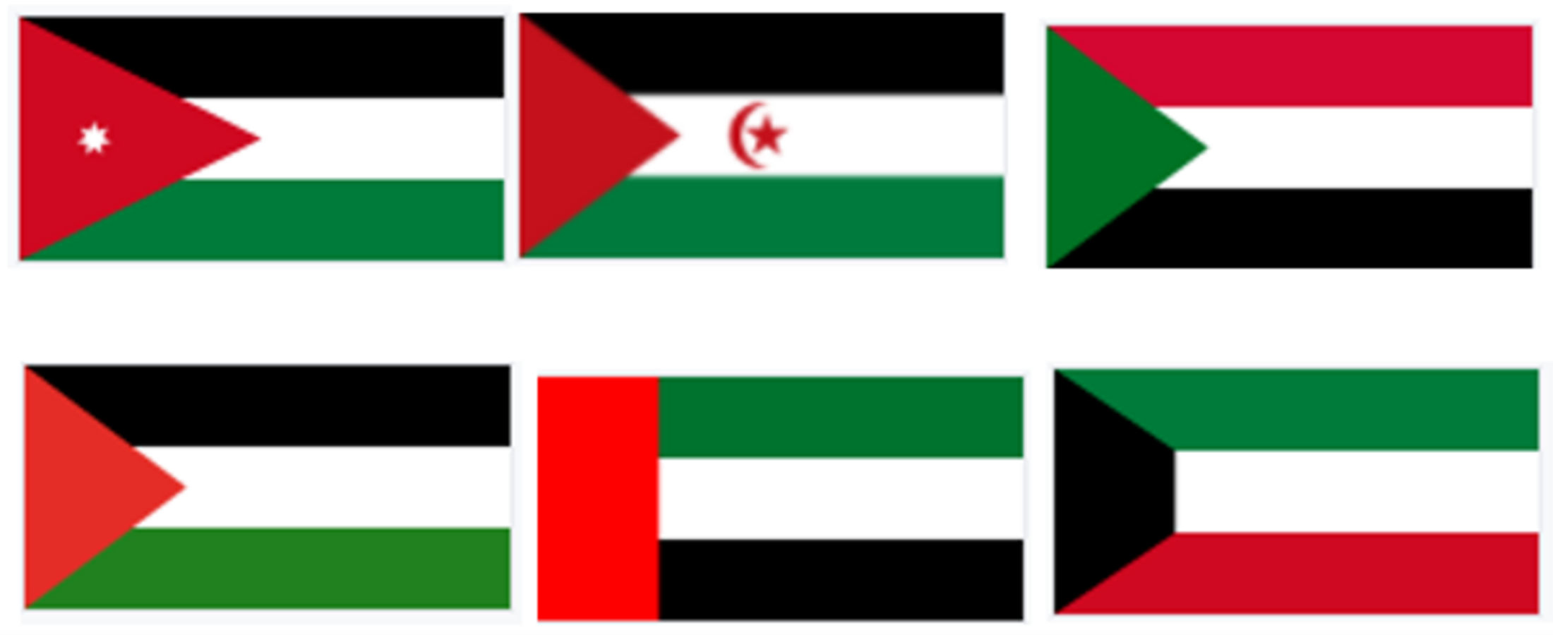 Je ne peux prétendre à l’honnêteté intellectuelle en niant le factuel. Oui, le Pouvoir marocain a emprisonné arbitrairement, a violenté, a torturé à de multiples reprises. Cependant, la violence du Pouvoir marocain n'induit pas la légitimité d'un éventuel Sahara Espagnol indépendant. Parallèlement, la comparaison Palestine / Sahara Espagnol et donc Israël / Maroc de l'auteur me sidère. Il n'y a pas de ségrégation ethnique ou religieuse envers les Sahraouis. Aucun Marocain, civil ou officiel, ne regarde le Sahraoui comme "l’autre". Des familles établies depuis des décennies voire des siècles dans la délimitation "polisarienne" du Maroc revendiquent fièrement leurs origines sahraouies. Au Sahara, le seul critère qui peut vous rendre une cible de violence systémique du Pouvoir est l'intensité de votre critique envers ledit "Pouvoir". Et là, tous les Marocains, Sahraouis compris, sont égaux. Enfin, le parallèle entre drapeau palestinien et celui de la RASD qui est utilisé comme un signe (léger, certes) de la similarité entre les deux peuples révèle surtout l’attachement au mot « Arabe » dans « République Arabe Sahraouie Démocratique ». Ces couleurs représentent les couleurs panarabes issues des quatre « grandes » dynasties ayant régné sur tous les Arabes ou entrepris de le faire (Hachémite, Omeyyade, Abbasside et Fatimide). Pour m’amuser j’ai caché ci-dessous le drapeau de la RASD parmi ceux de pays arabes : Jordanie, Soudan, Palestine, Emirats Arabes Unis et Koweit et je n'ai pas mis de légende.