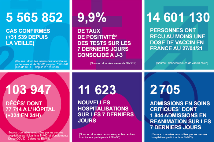 COVID-19 : bilan et chiffres clés en France au 28/04/2021