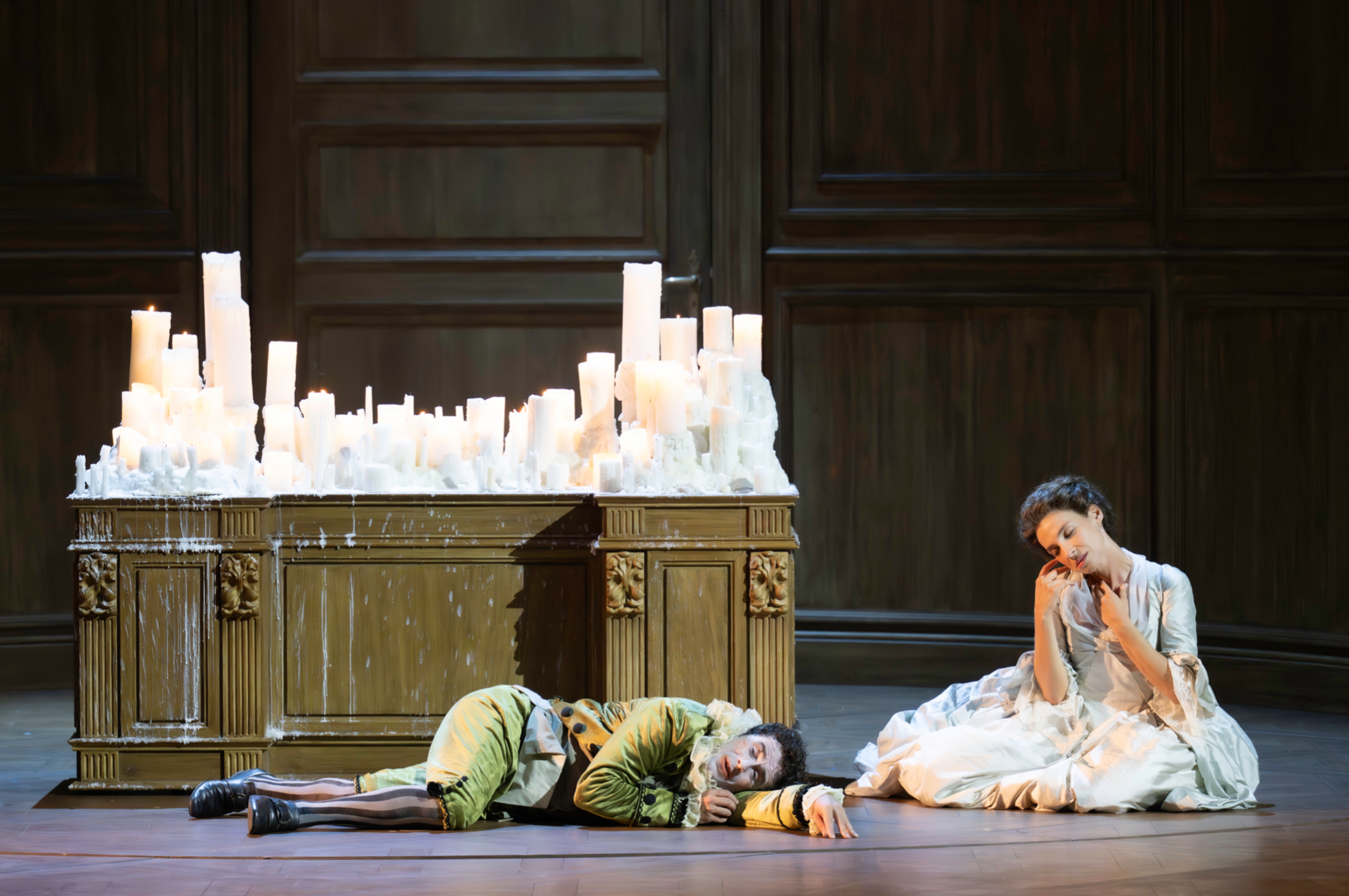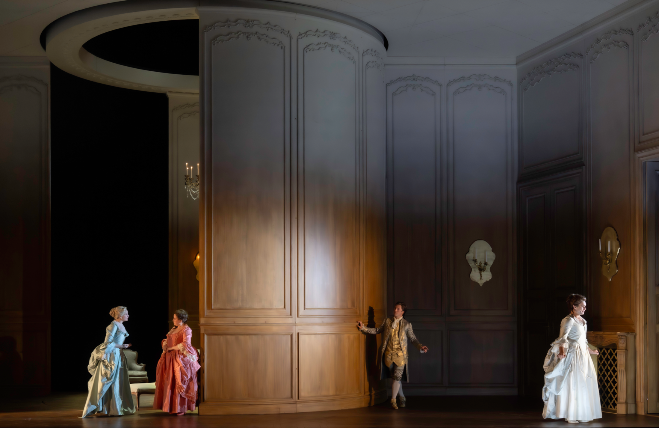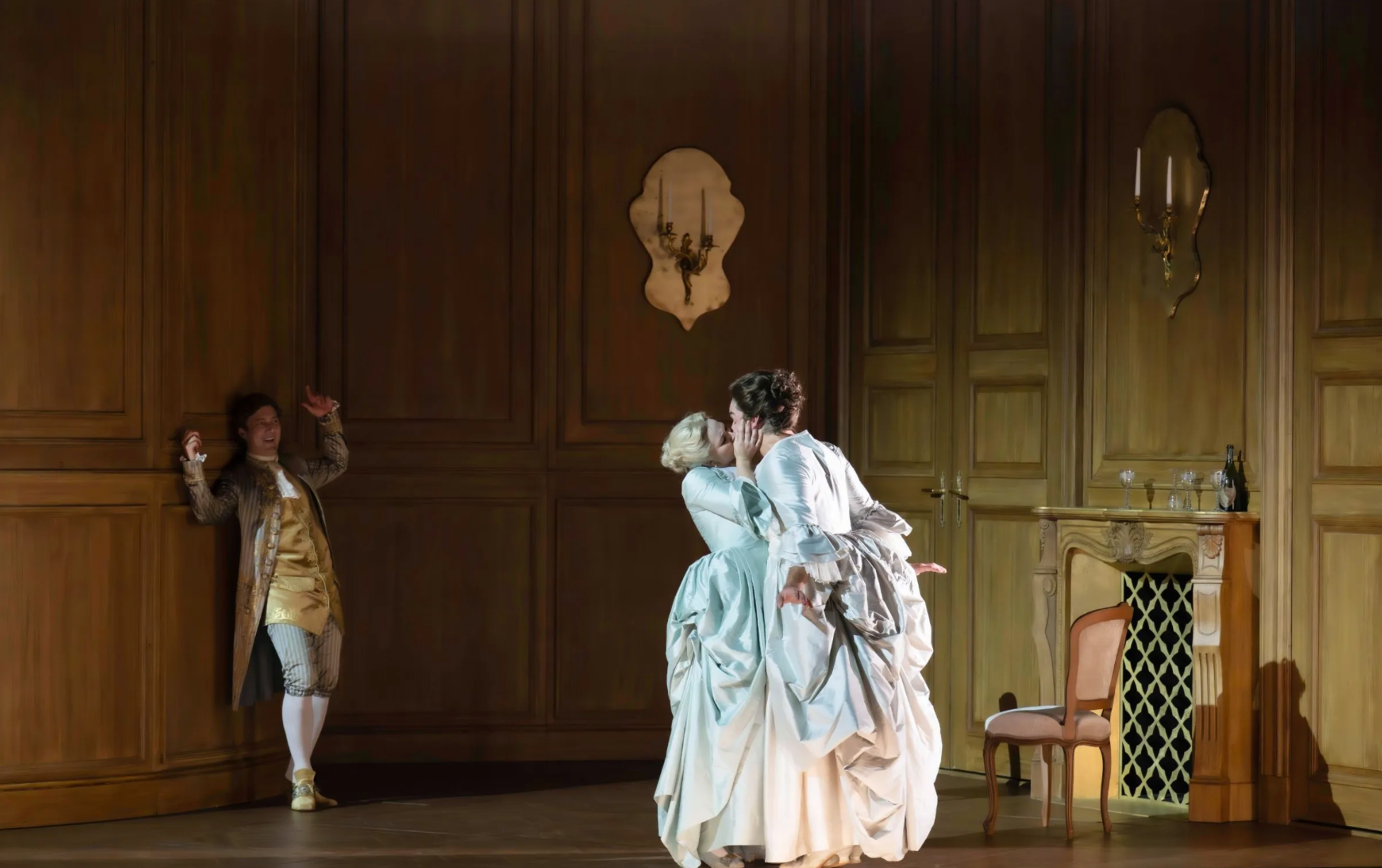 Trente ans après la miraculeuse production d'Herbert Wernicke et René Jacobs (heureusement disponible en DVD), Jetske Mijnssen, la metteuse en scène néerlandaise, a choisi de transposer le monde baroque néo-platonicien des complices Faustini et Cavalli, qui s’inspiraient des Les Métamorphoses Ovide, dans l’univers des Liaisons dangereuses de Choderlos de Laclos. Et cette interprétation s’avère cohérente et fonctionne sans forçage… jusqu’à l’image finale. Pour Jetske Mijnssen, Jupiter, c’est Valmont, Junon c’est Merteuil et la Calisto, une Tourvel qui se découvre Cécile de Volanges.
