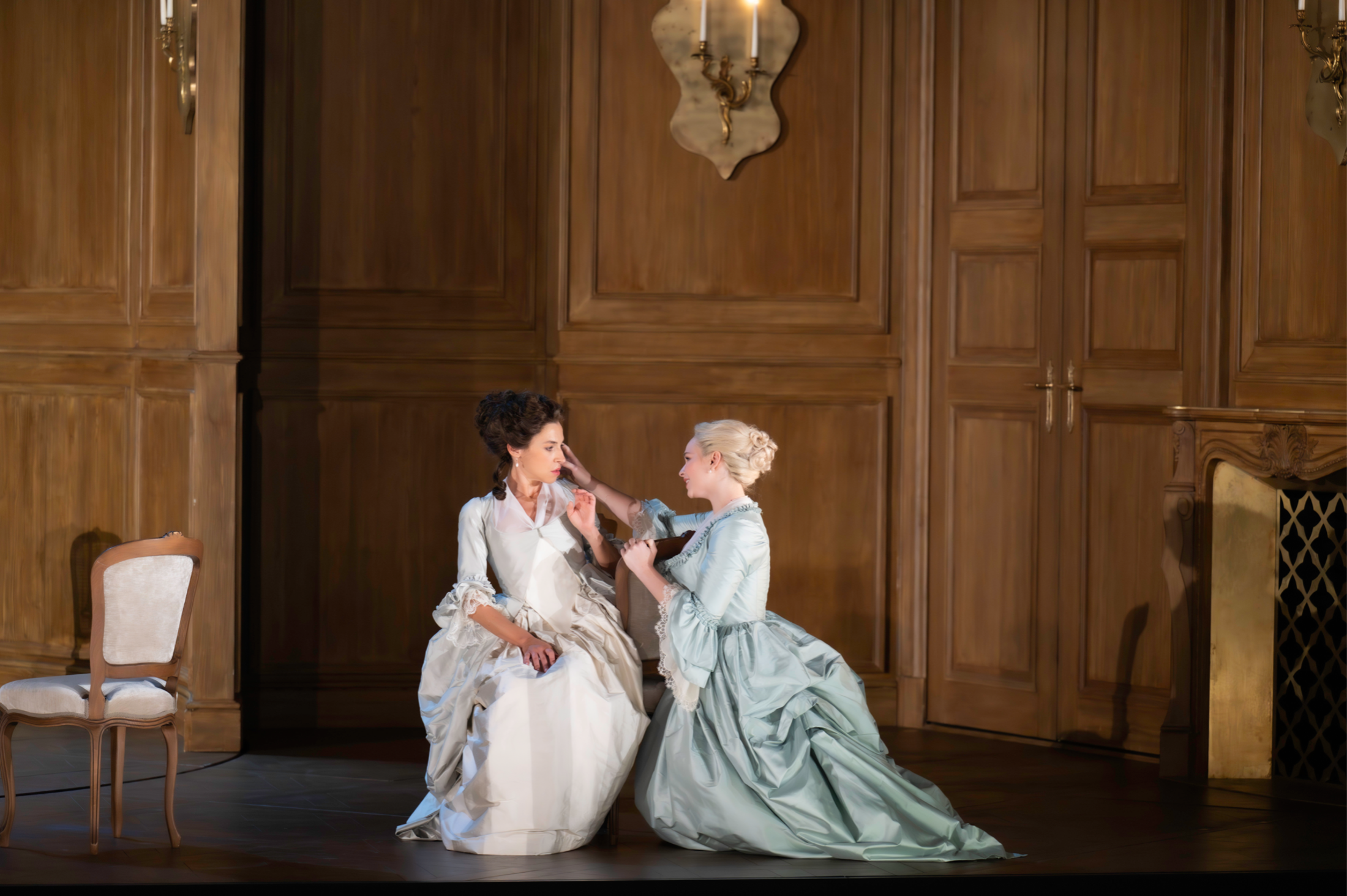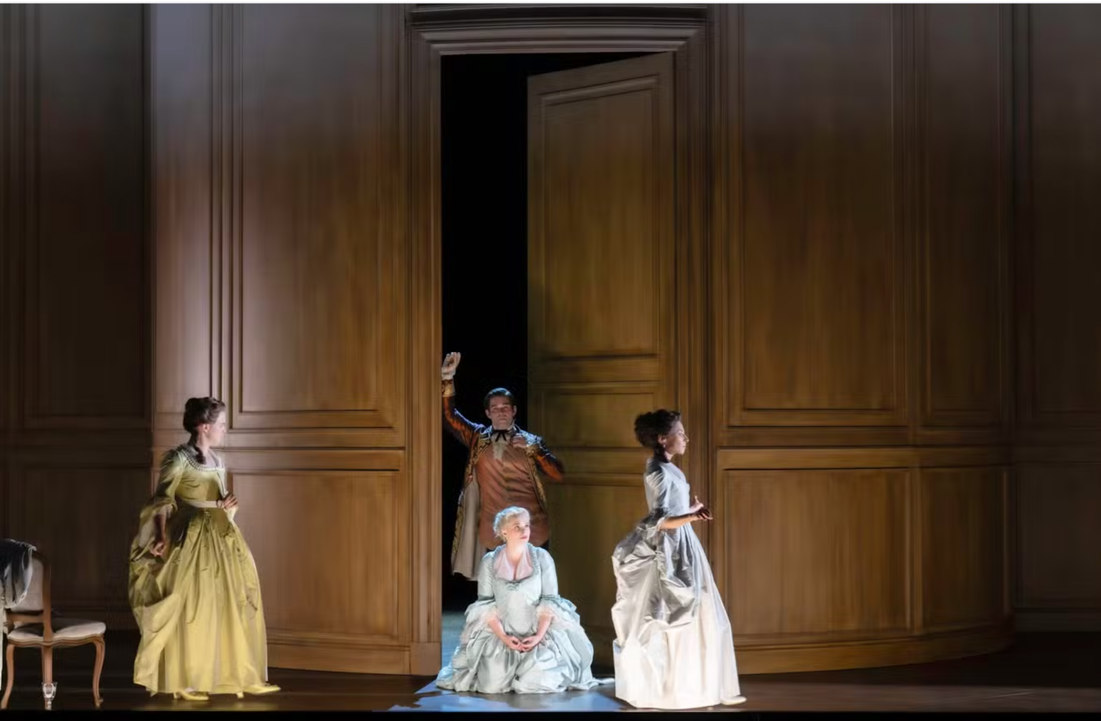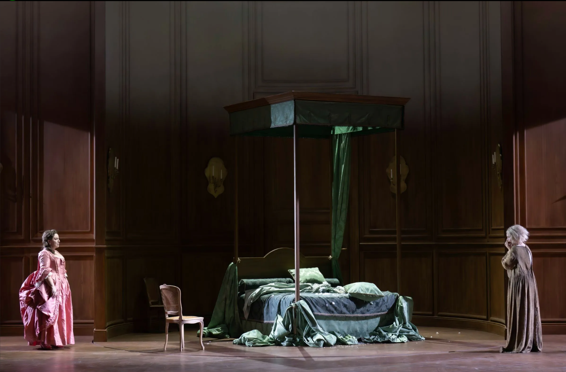 Trente ans après la miraculeuse production d'Herbert Wernicke et René Jacobs (heureusement disponible en DVD), Jetske Mijnssen, la metteuse en scène néerlandaise, a choisi de transposer le monde baroque néo-platonicien des complices Faustini et Cavalli, qui s’inspiraient des Les Métamorphoses Ovide, dans l’univers des Liaisons dangereuses de Choderlos de Laclos. Et cette interprétation s’avère cohérente et fonctionne sans forçage… jusqu’à l’image finale. Pour Jetske Mijnssen, Jupiter, c’est Valmont, Junon c’est Merteuil et la Calisto, une Tourvel qui se découvre Cécile de Volanges.