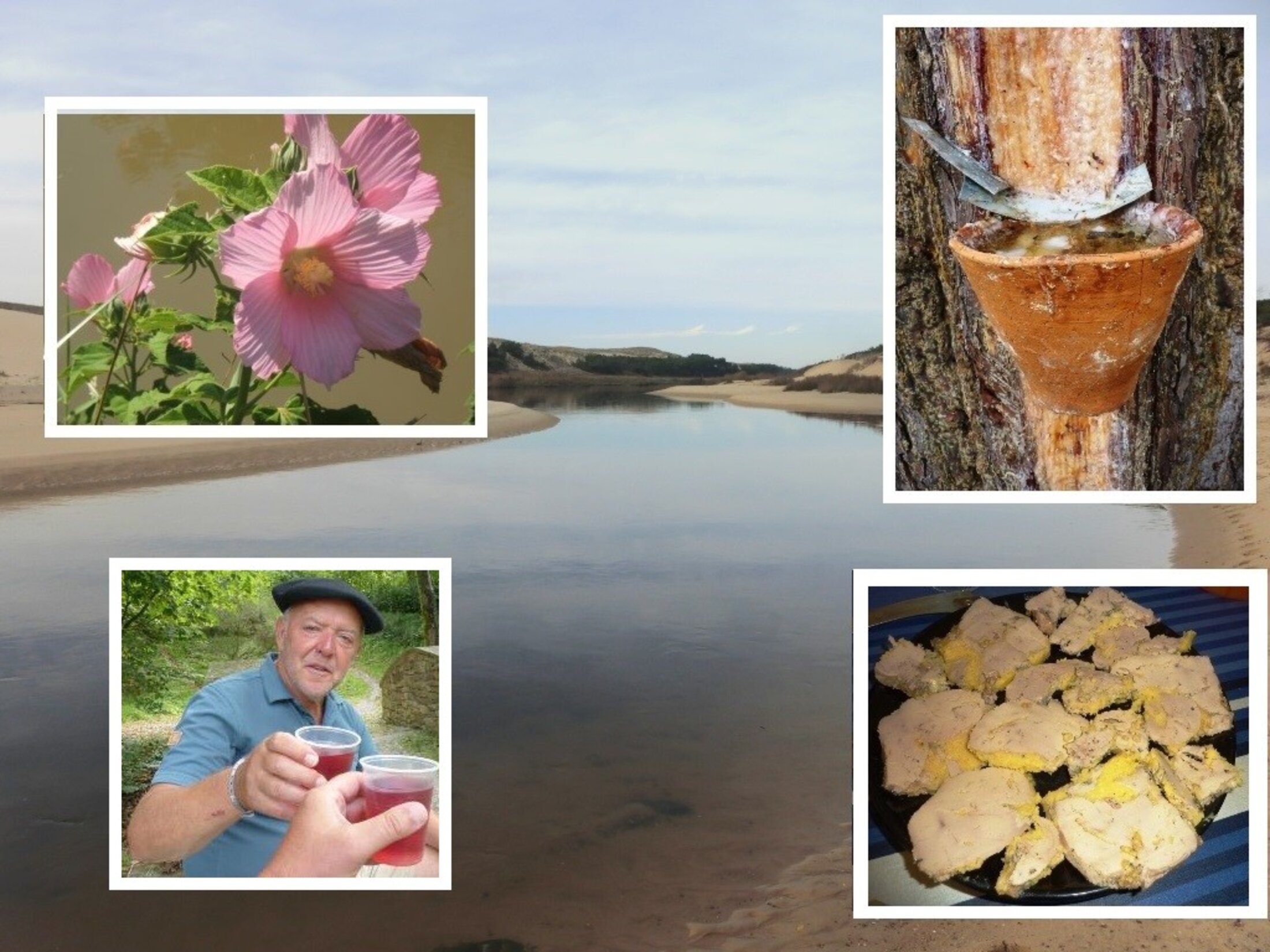 Sur cette photo d'un des plus beaux endroits au monde, le courant d'Huchet, on voit Jean-Claude trinquer à la Sangria maison de Mikelenborda.