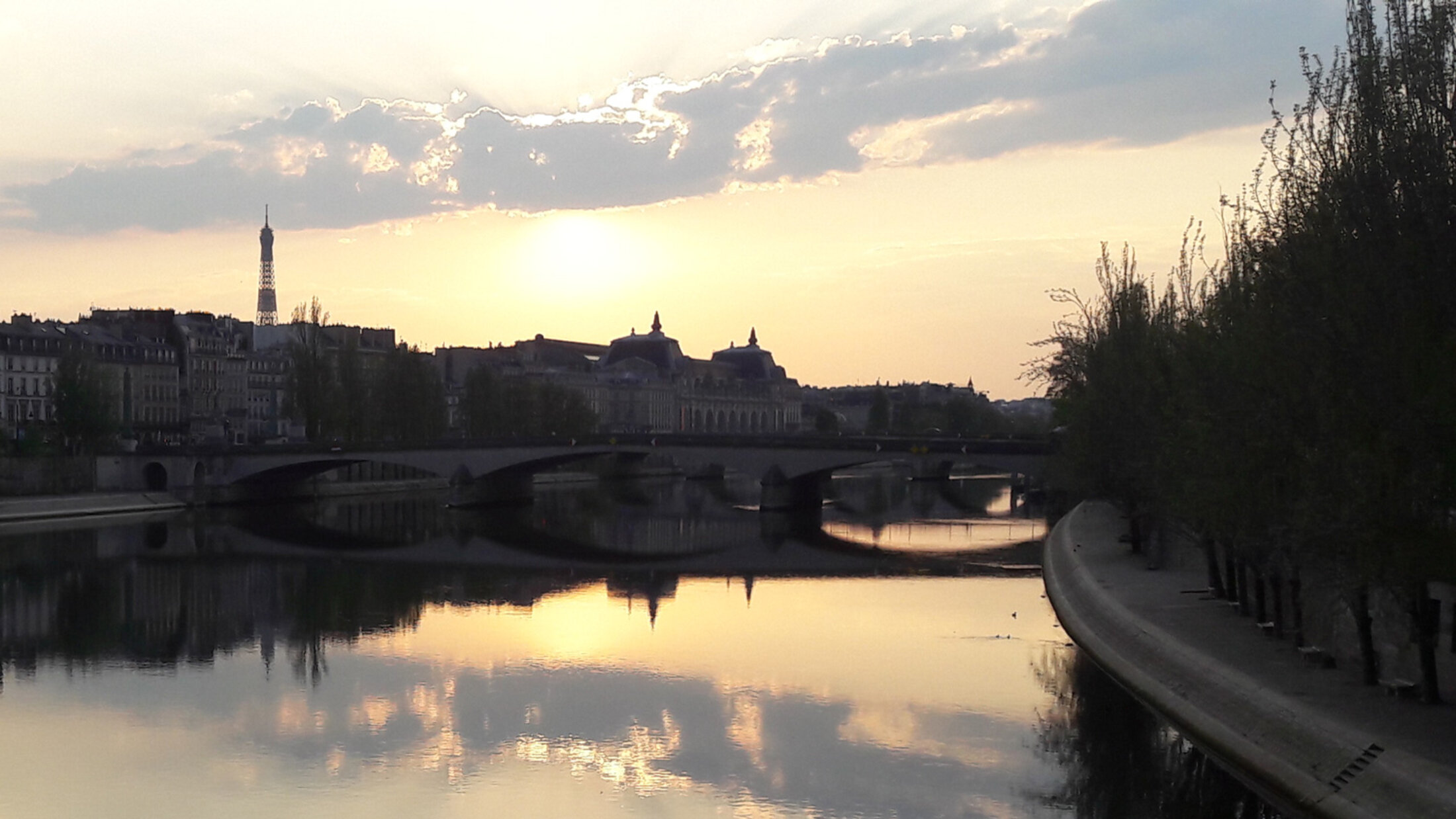 Ce soir, à 19h30, je décide de sortir pour une bonne marche. L'attestation téléchargée sur mon téléphone mobile, je sors et me dirige vers la Seine. Arrivé sur le Pont royal, je découvre la sérénité. Les promeneurs sont silencieux, touchés par le calme. La Seine est vide, lisse comme un miroir. Le ciel est vide d'avions.
