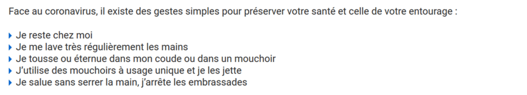 Sur les trottoirs, tous les 1 mètres, les 1 mètres 50, des traits sont peints, perpendiculairement aux étals. Les clients restent séparés grâce à ces repères et respectent ainsi les distances. Ce matin, on a entendu à nouveau à la radio les consignes : ne pas se serrer la main, ne pas faire d'embrassades. Je n'arrive pas à m'habituer à entendre ces ordres. J'affiche les consignes ci-dessous, pour que l'on nous croie plus tard, lorsque la pandémie aura disparu. Les entendre chaque jour ne les rend pas plus supportables.