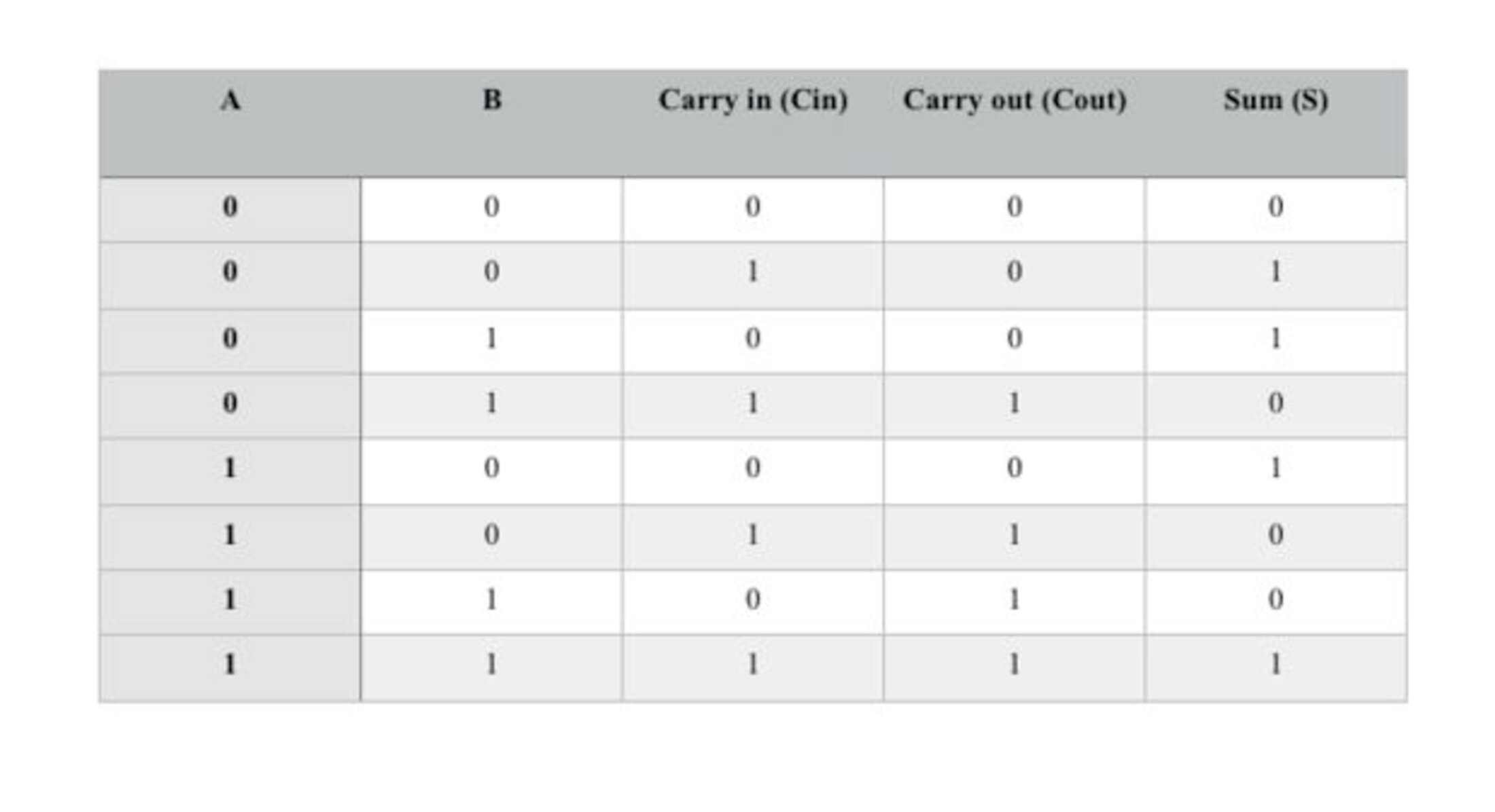 Vous pouvez par exemple voir la table de vérité d'un "additionneur" (qui effectue des "additions binaires").