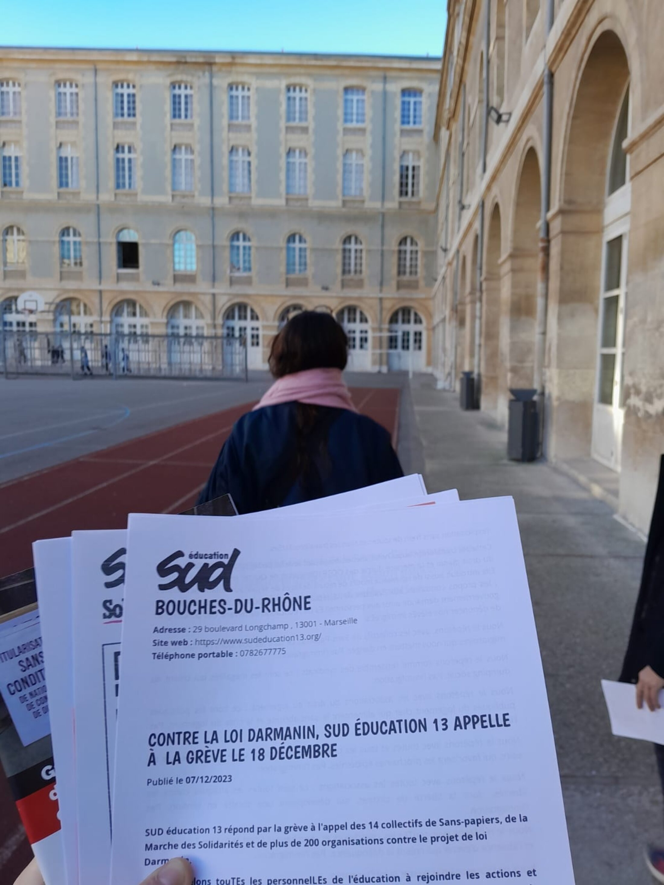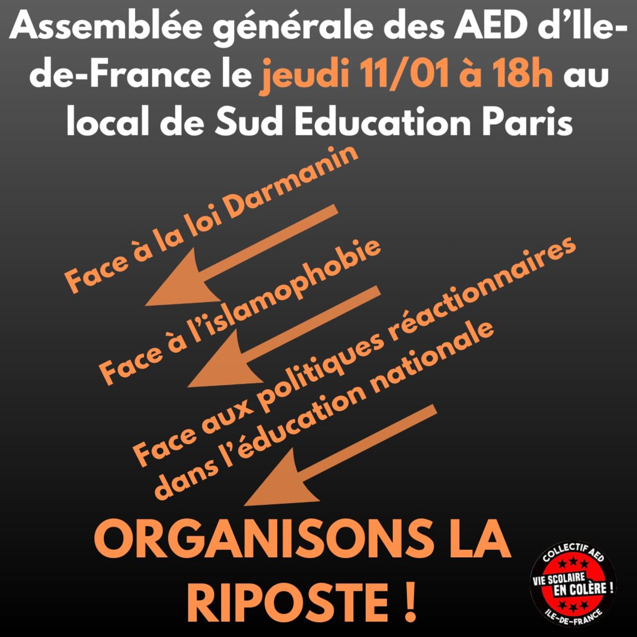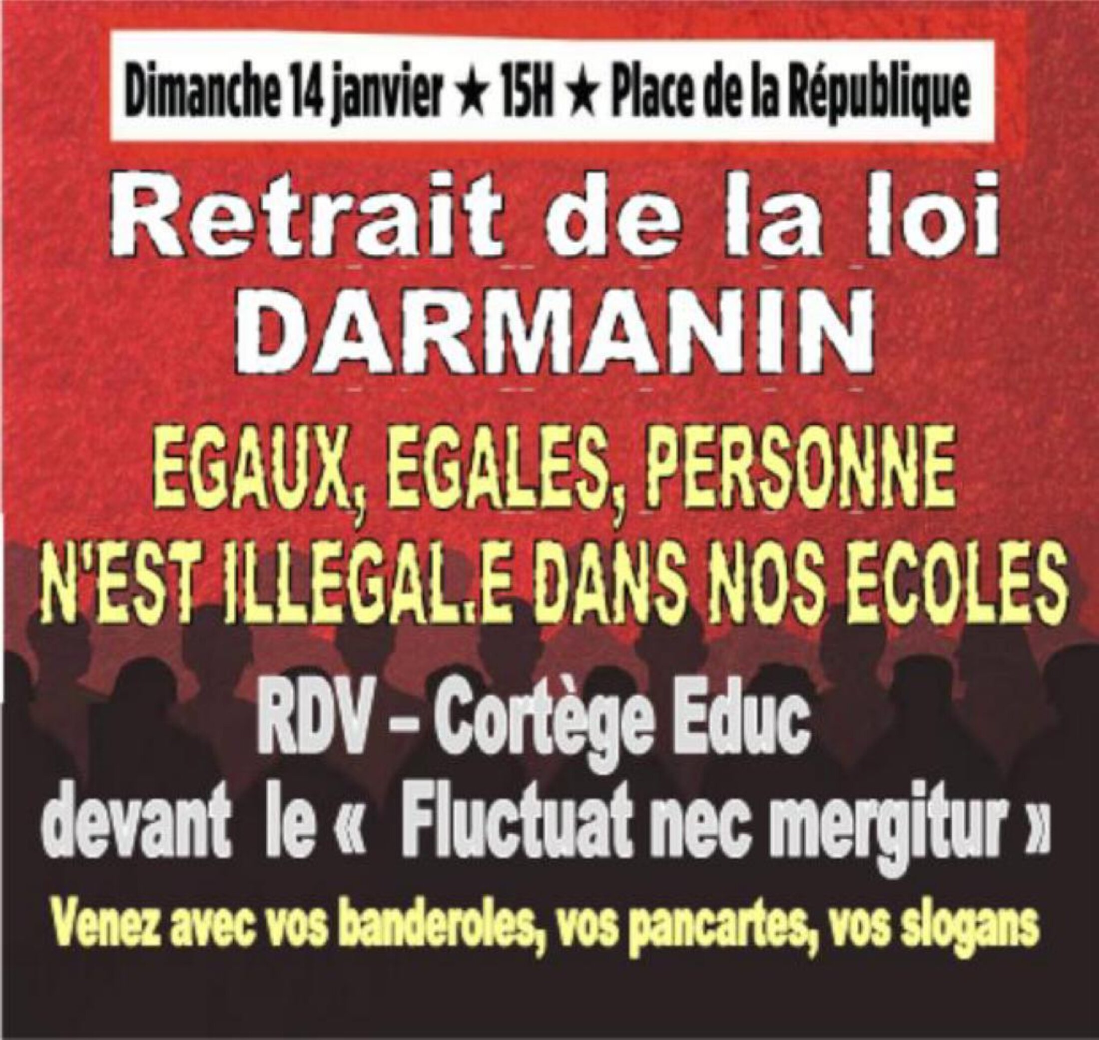 Des initiatives de secteur se mettent en place. En premier lieu dans l’Éducation. Les banderoles contre la loi Darmanin commencent à fleurir devant les écoles à tel point que le SNES a relayé l’appel. A Paris un cortège éduc s’organise pour la manifestation du 14. A Charenton les AssistantEs d’éducation se sont mis en grève pendant trois jours contre la loi et une assemblée des AED a eu lieu ce jeudi. Une assemblée lycéenne a lieu ce vendredi soir à Paris contre la loi.